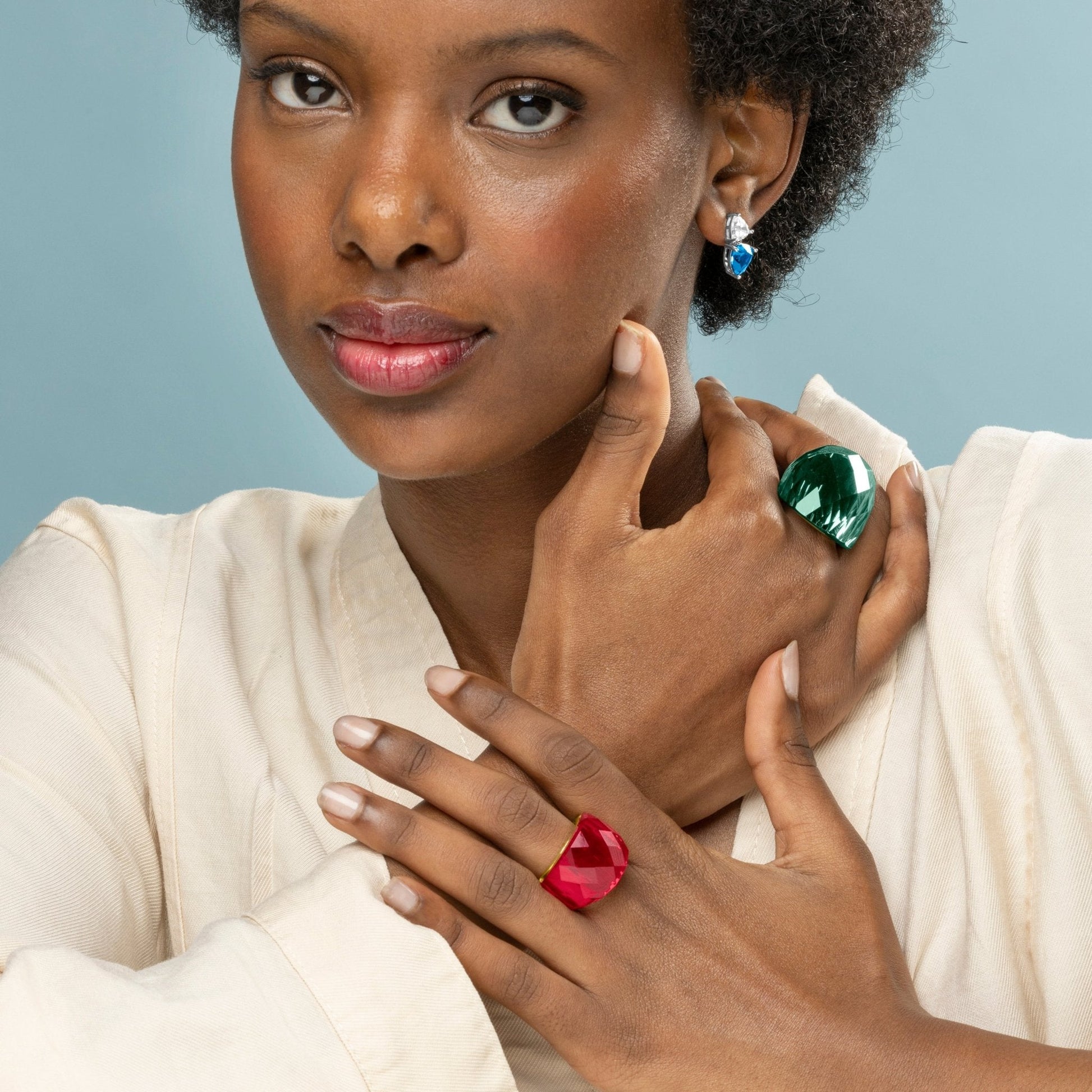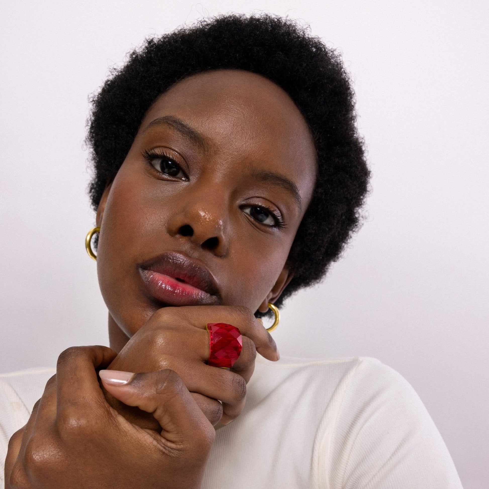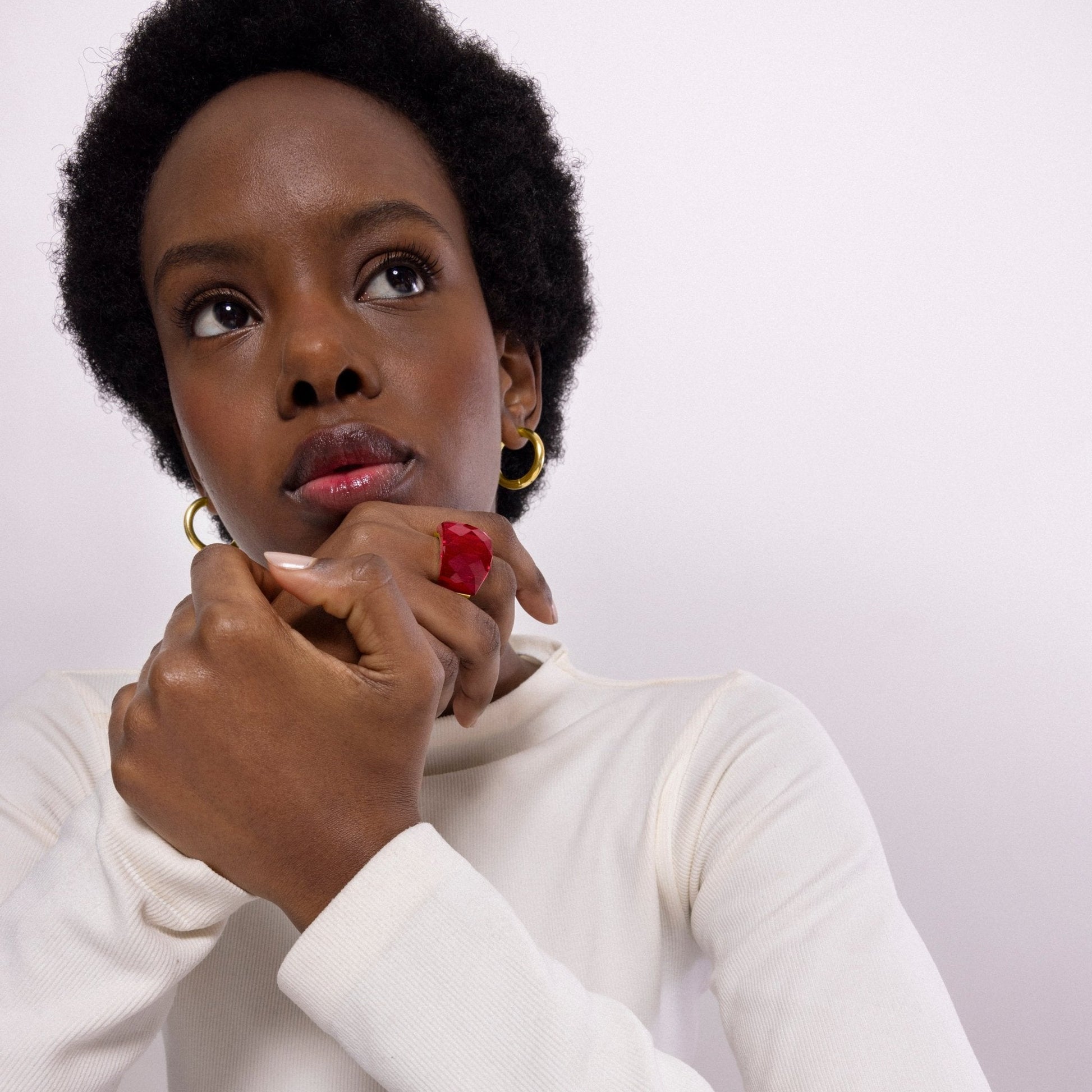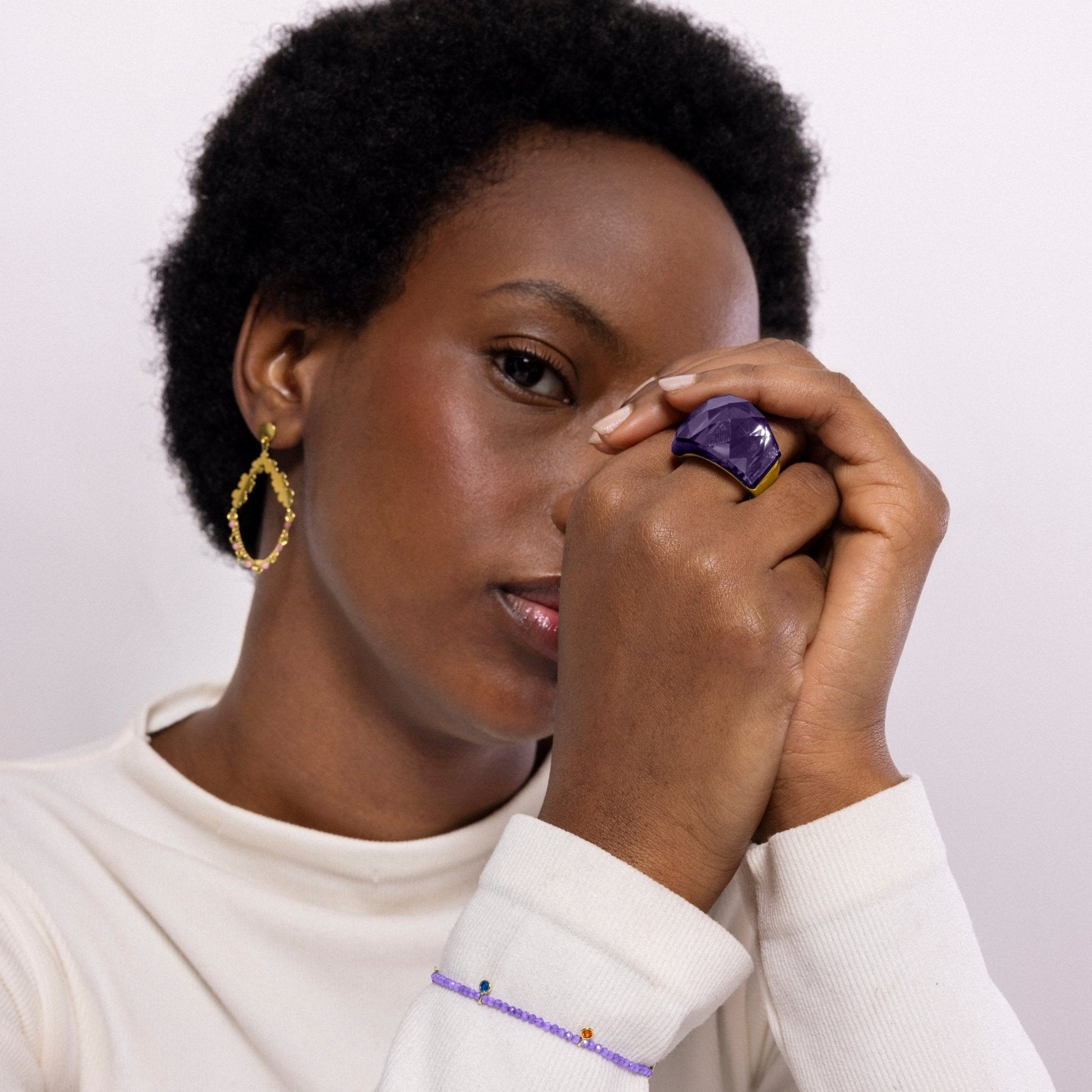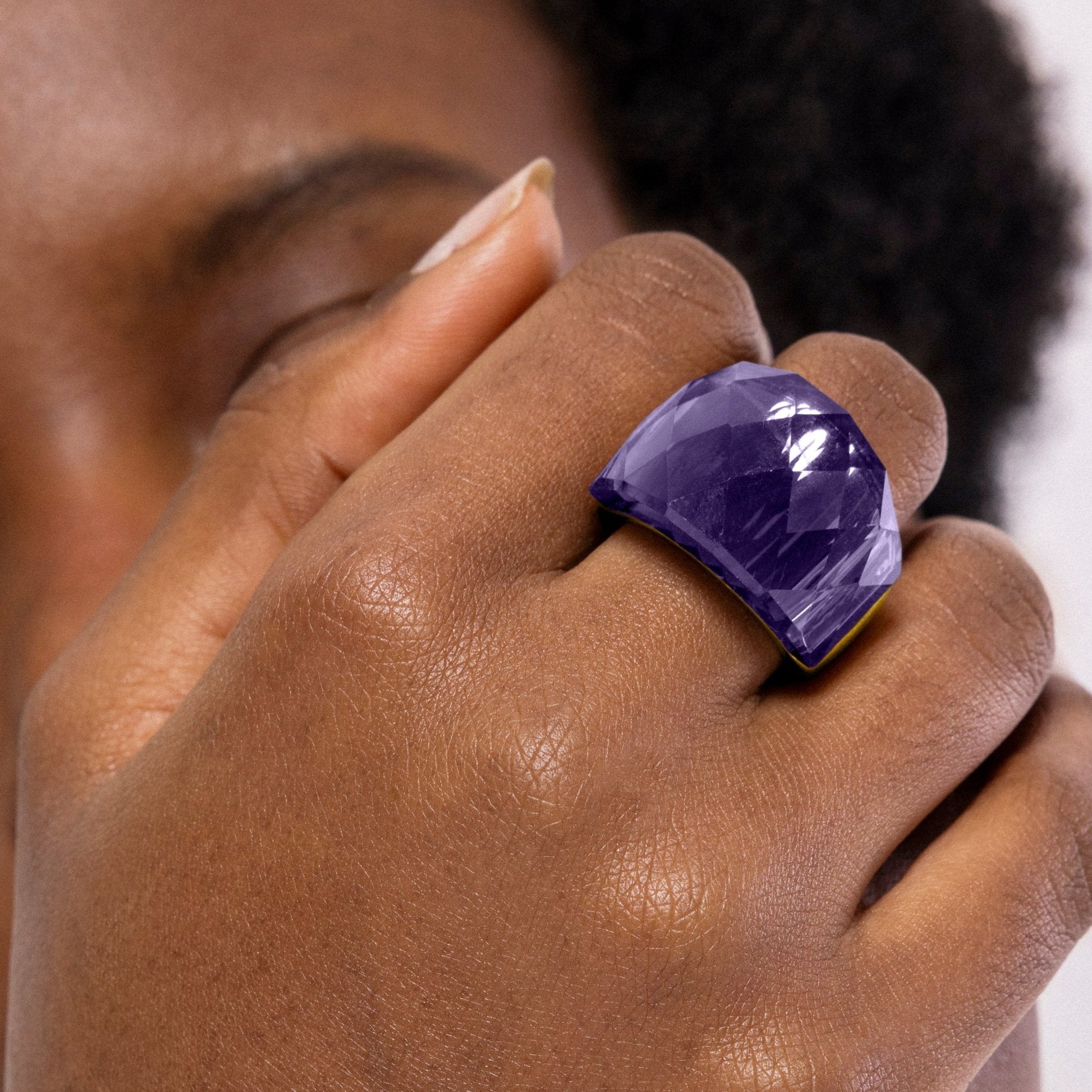 Anillo de metal Fadino con Cuarzo Hidrotermal Amatista acabado en oro amarillo de 18K. África se convierte en la línea perfecta para mujeres con personalidad, que no temen arriesgar y lucir piezas con carácter propio.