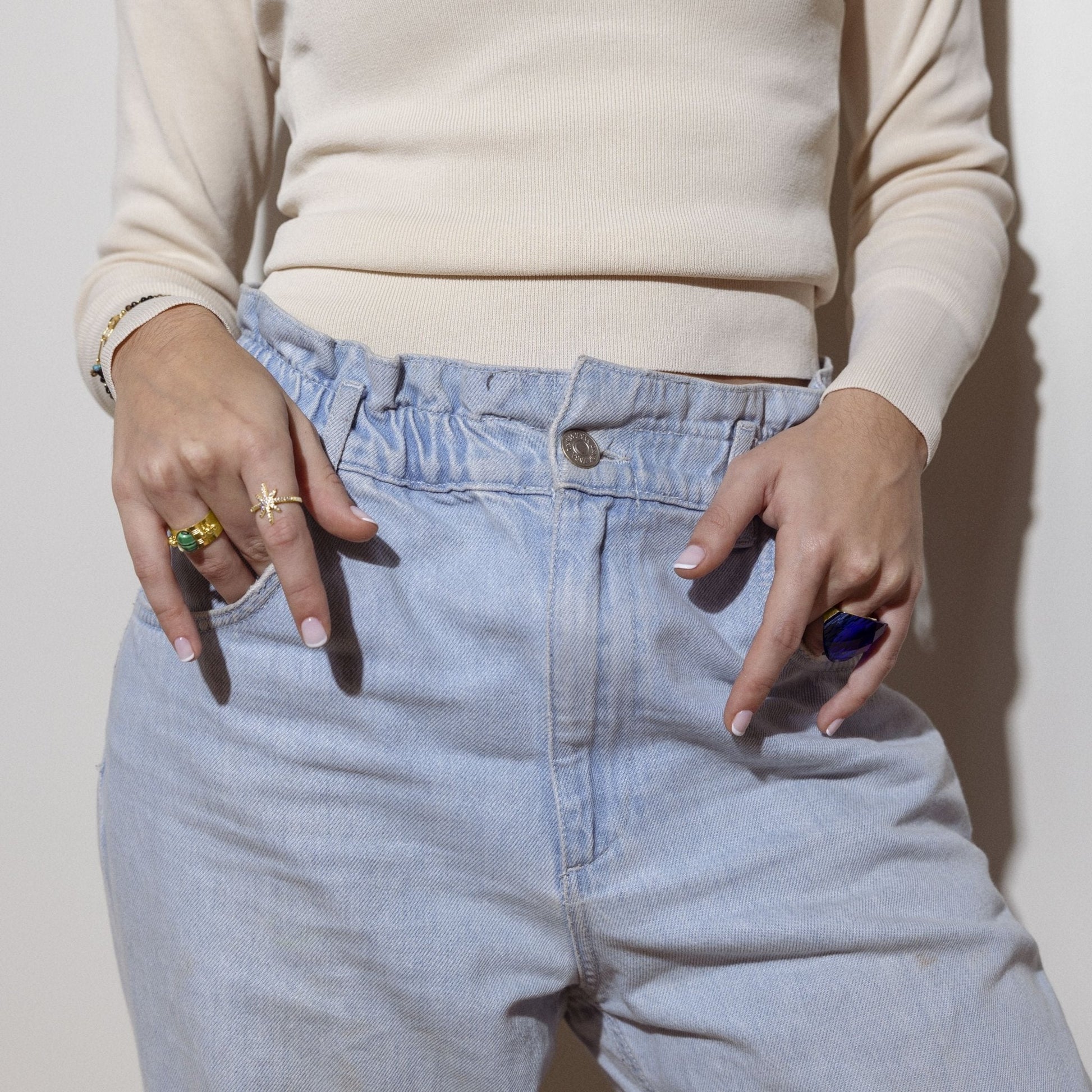 Anillo Oriok de Circonita Brillante acabado oro 18k. África Moda te sumerge en un mundo de colores vibrantes, texturas exquisitas y diseños artesanales que reflejarán la esencia de tu espirítu.