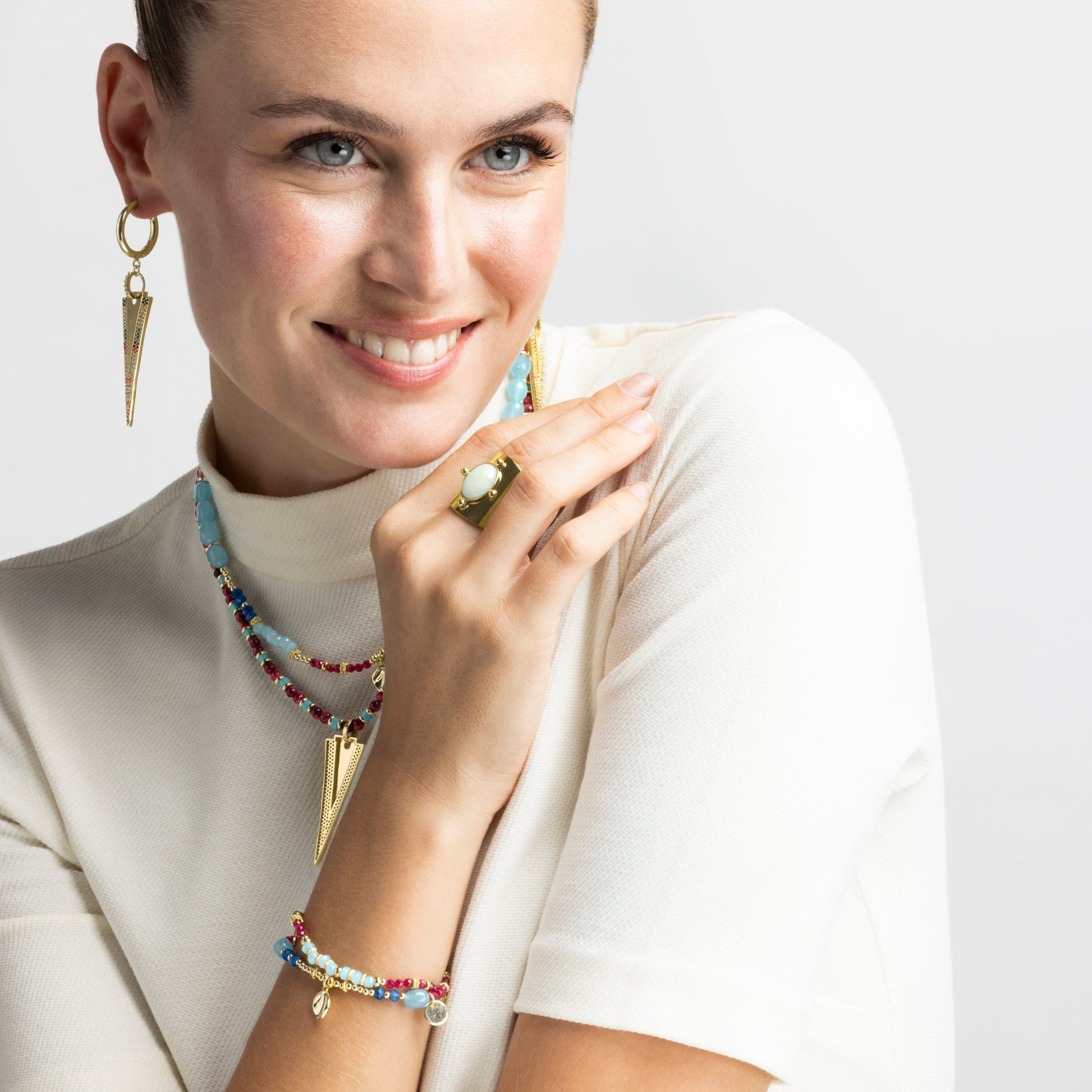 Anillo con Amazonita acabado oro 18k - Kumora