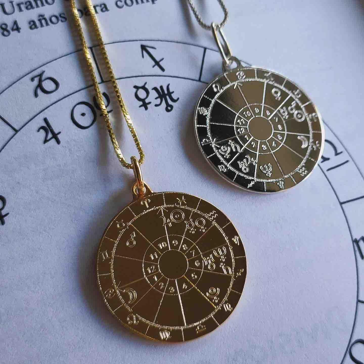 Colgante medallón personalizado con la carta astral del día que se desee.