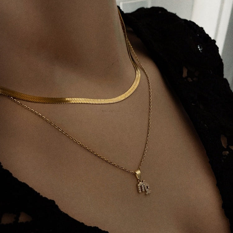 Elija su signo zodiacal con este delicado colgante, perfecto para lucirlo en cualquier ocasión. Detalles delicados de circonita cúbica agregan un toque de elegancia. Cadena de acero y dije de latón.