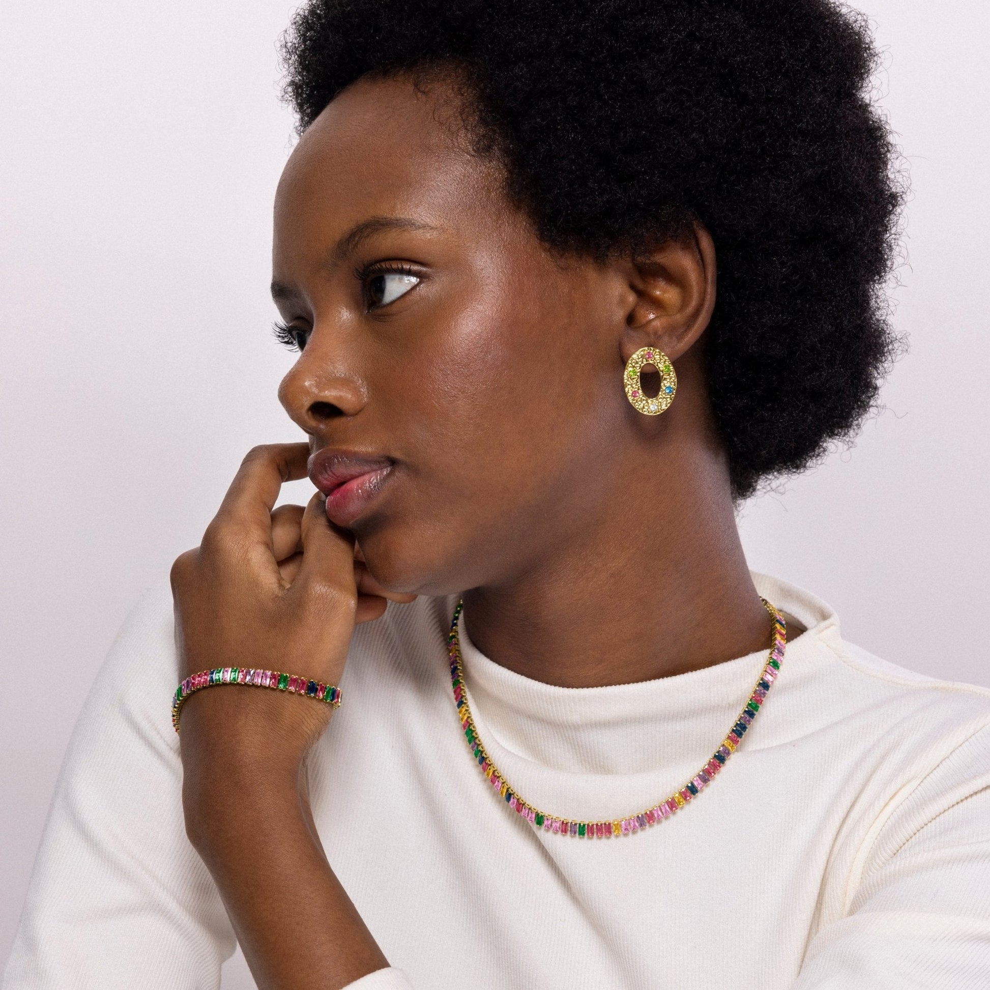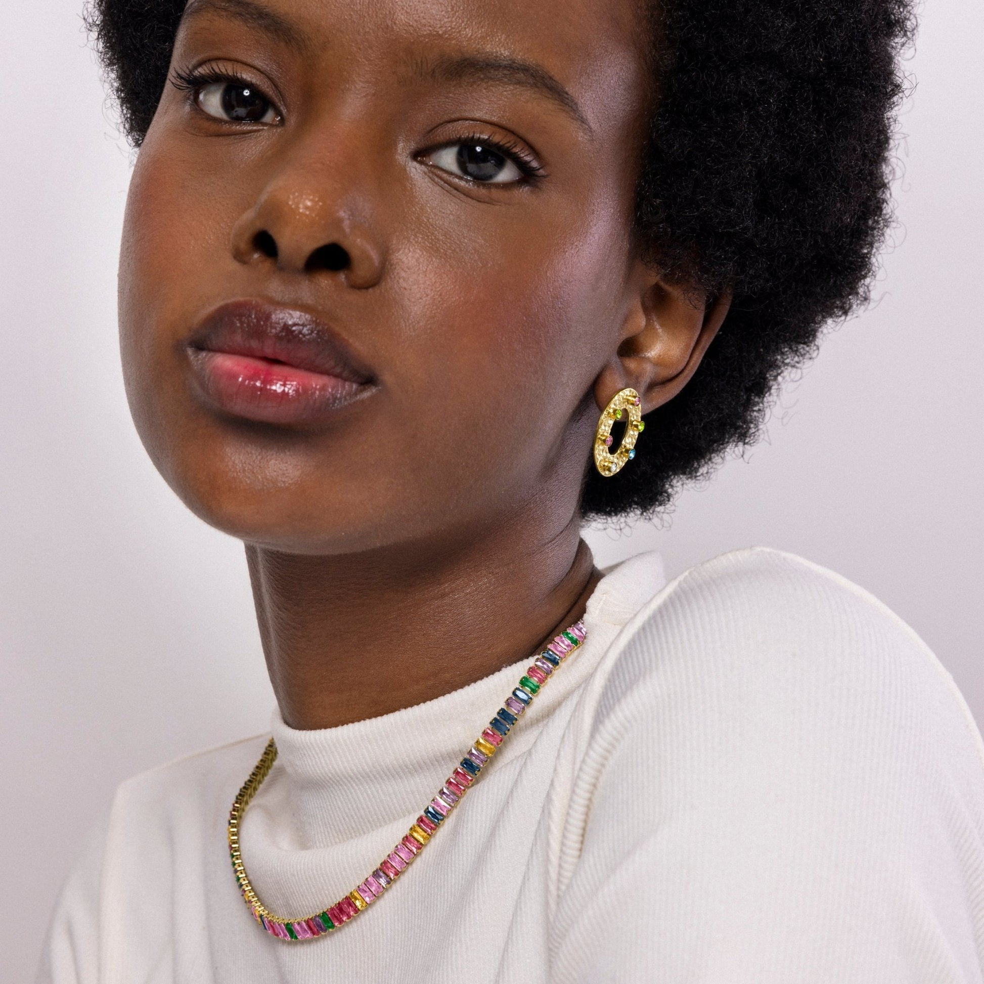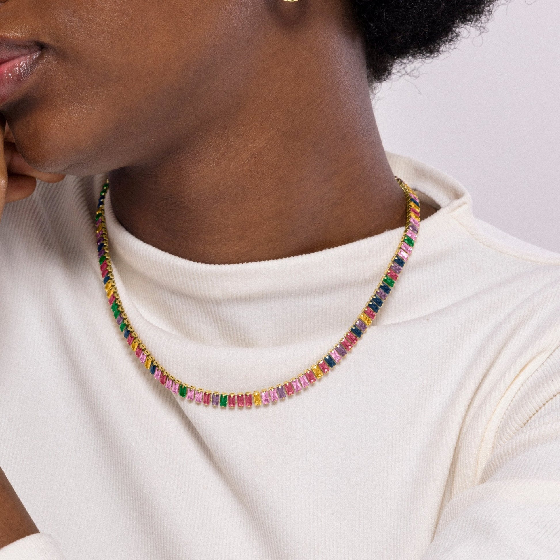 Collar Gorys de Circonita Multicolor acabado en oro amarillo de 18k.