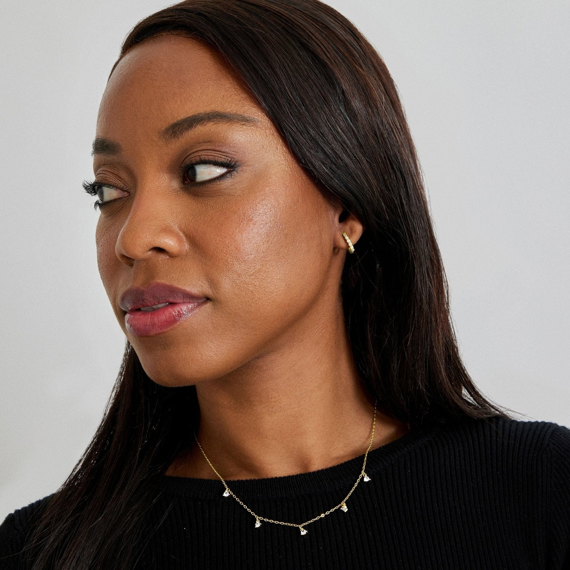 Collar Kisain de Circonita Brillante acabado en baño de oro amarillo de 18 quilates. África Basic encarna la sencillez refinada, piezas atemporales con líneas suaves y el brillo adicional de las circonitas. Joyas básicas sin pretensiones que son perfectas para el uso diario, pero también pueden funcionar en ocasiones especiales.