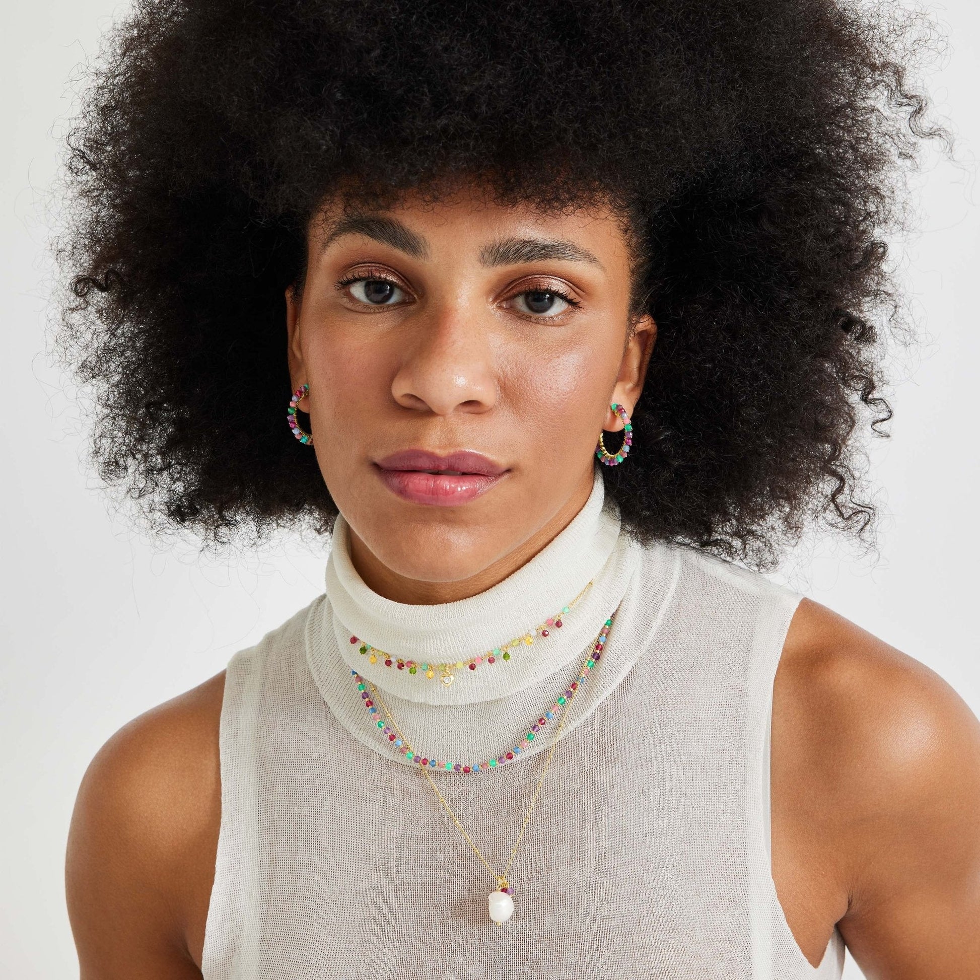 Collar Zain de Perla Blanca acabado oro 18k. África Moda te sumerge en un mundo de colores vibrantes, texturas exquisitas y diseños artesanales que reflejarán la esencia de tu espirítu.