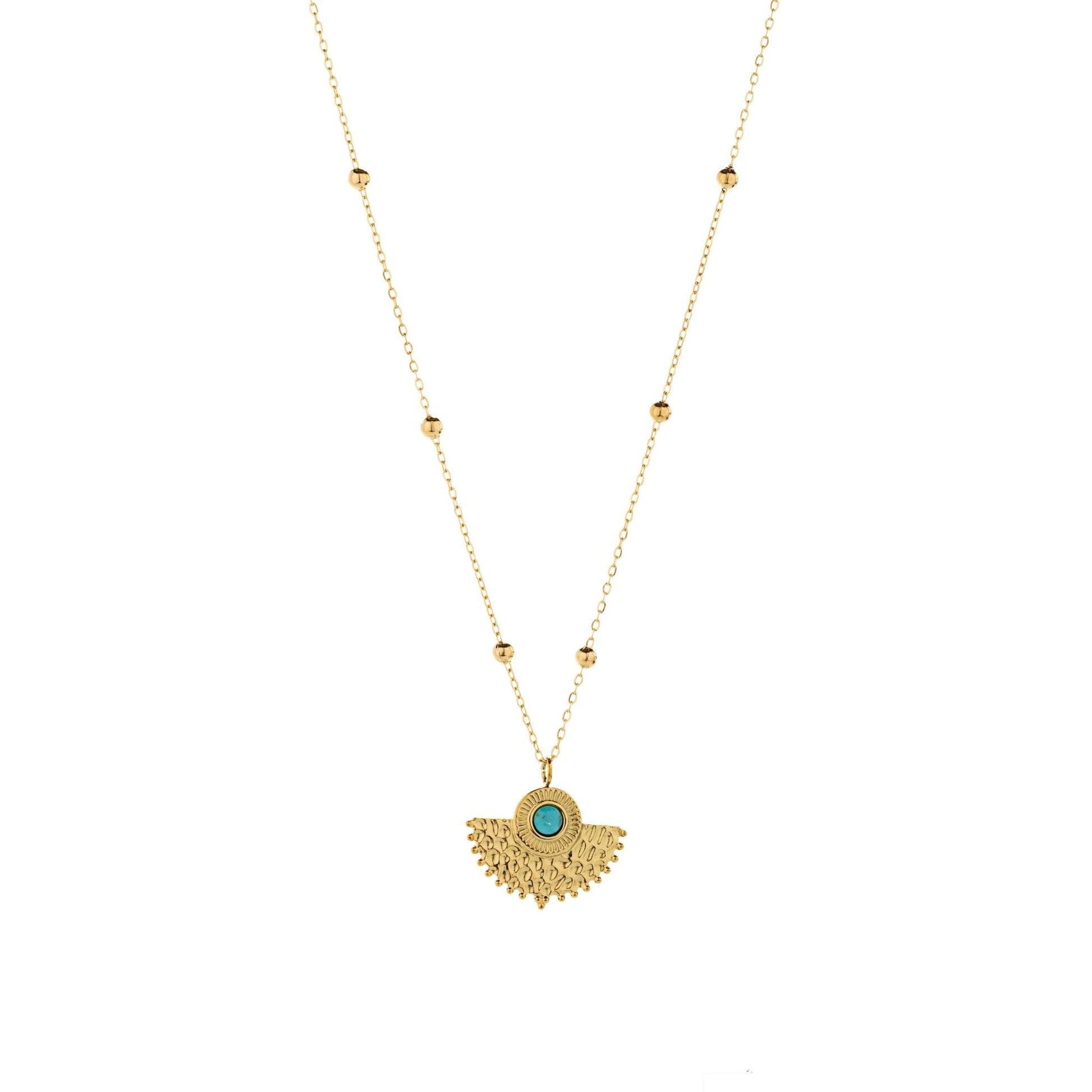 Collar Kumora de Turquesa acabado oro 18k. África Moda te sumerge en un mundo de colores vibrantes, texturas exquisitas y diseños artesanales que reflejarán la esencia de tu espirítu.