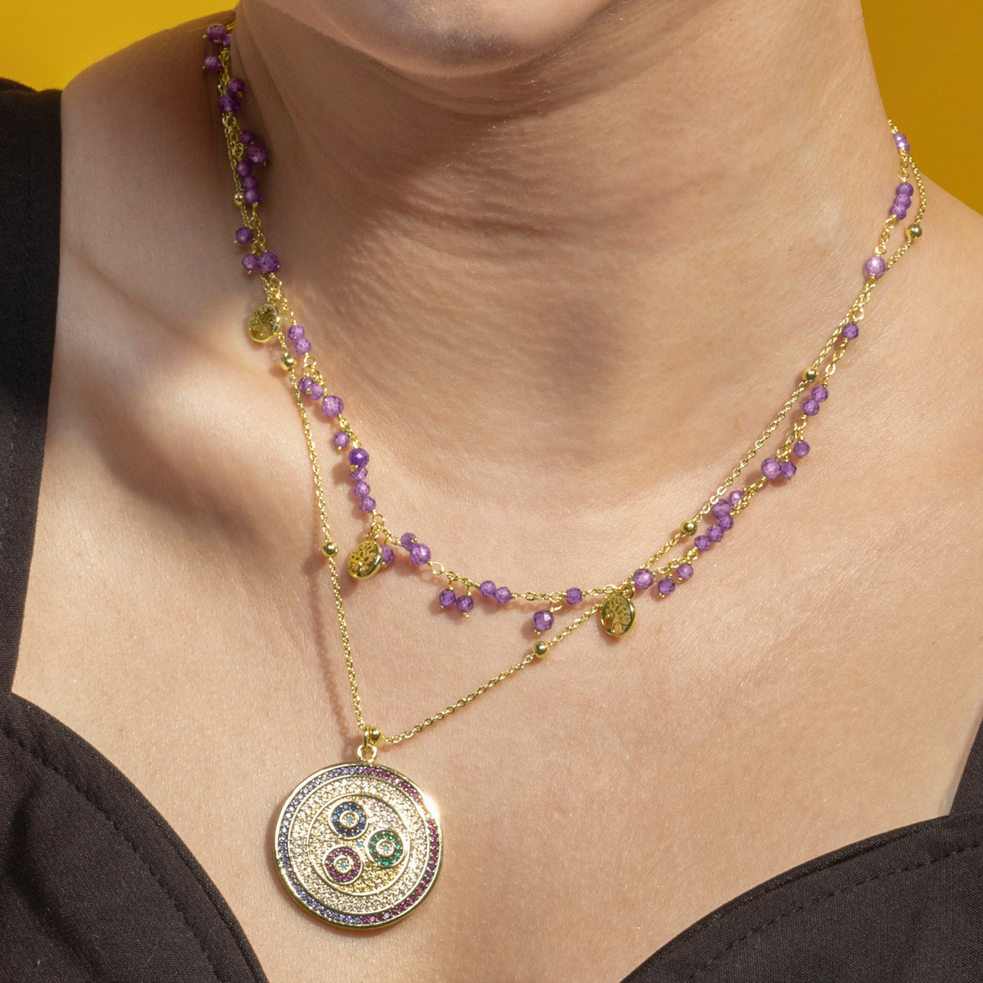 Collar con Circonita Multicolor acabado oro 18k - Purma