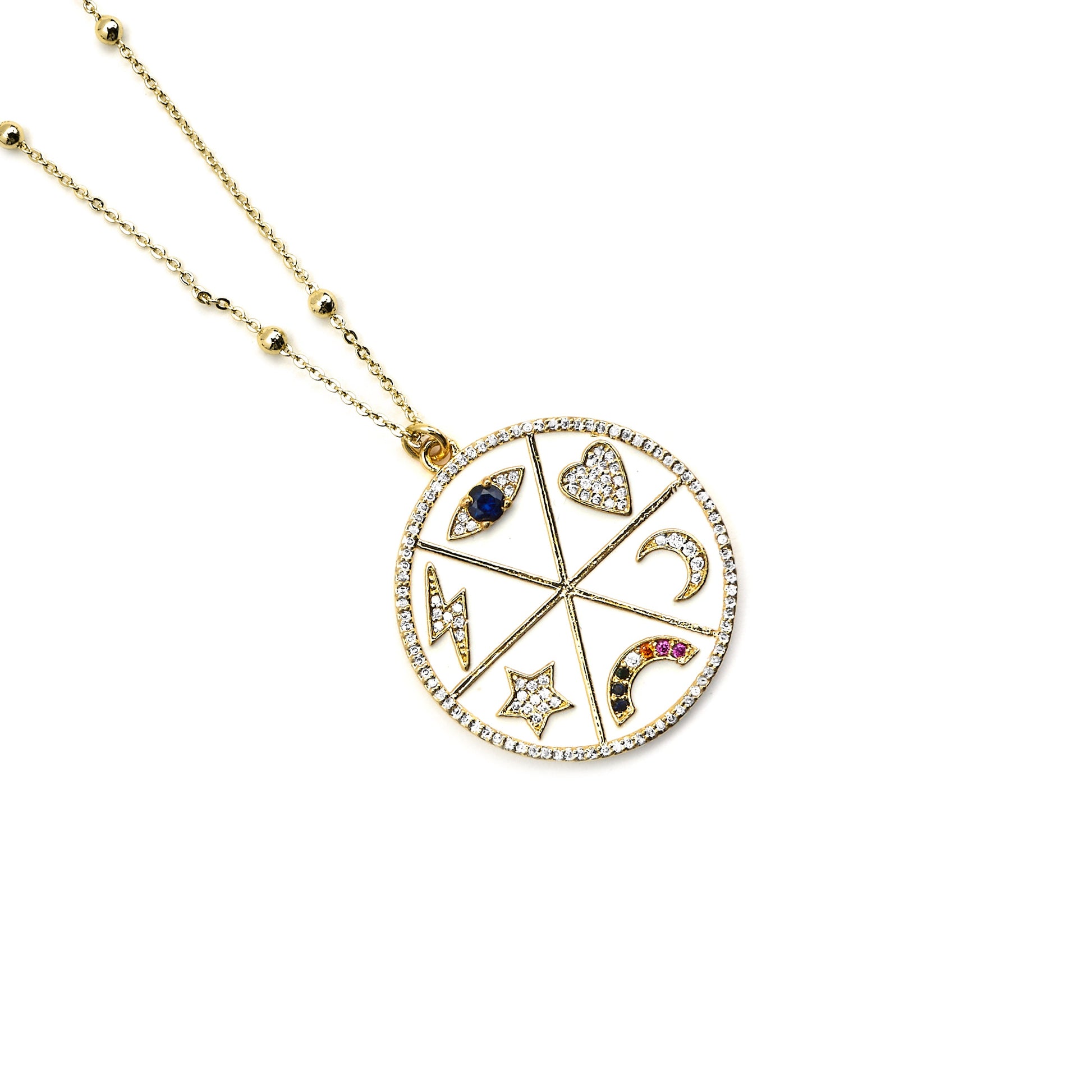 Collar con Circonita Multicolor acabado oro 18k - Thiem