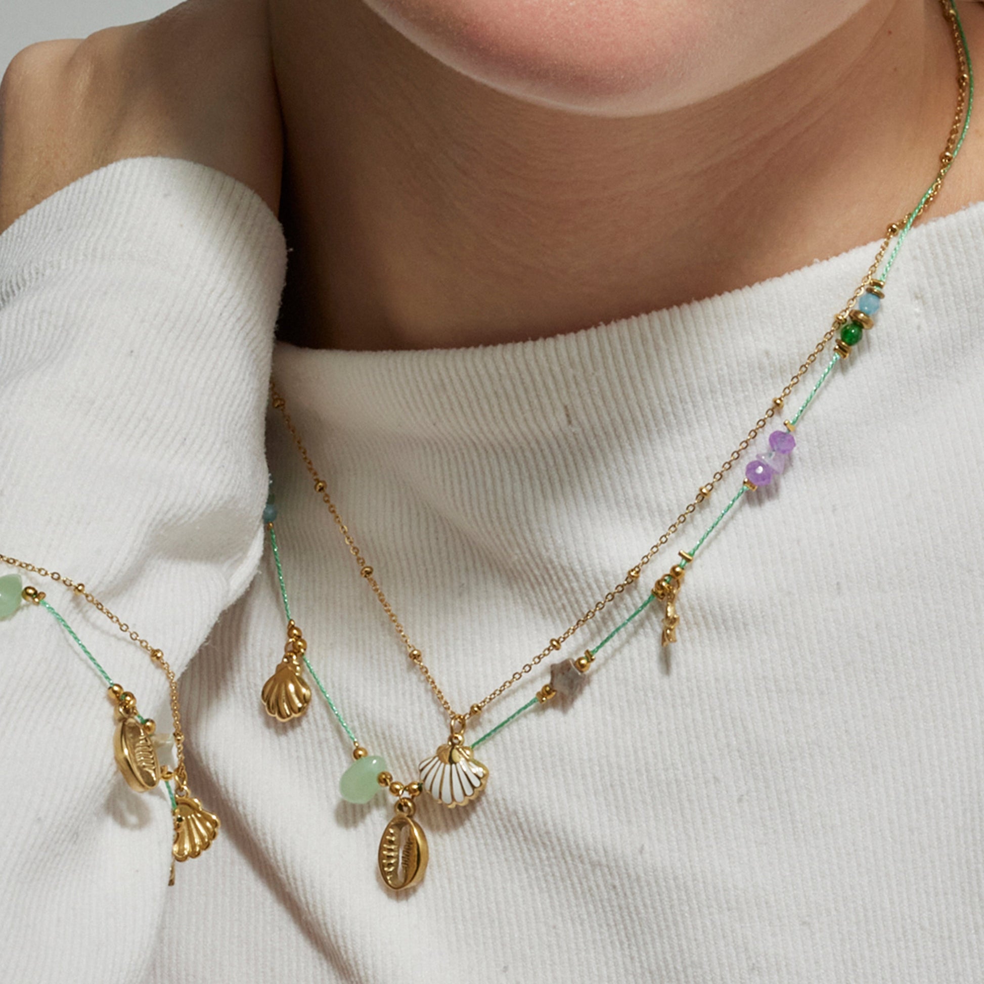 Collar Kerad con Cristal Multicolor acabado oro 18k. El estilo Boho es una estética de espíritu libre que mezcla diferentes culturas y expresiones artísticas en un estilo ecléctico con énfasis en los elementos orgánicos y la naturaleza.