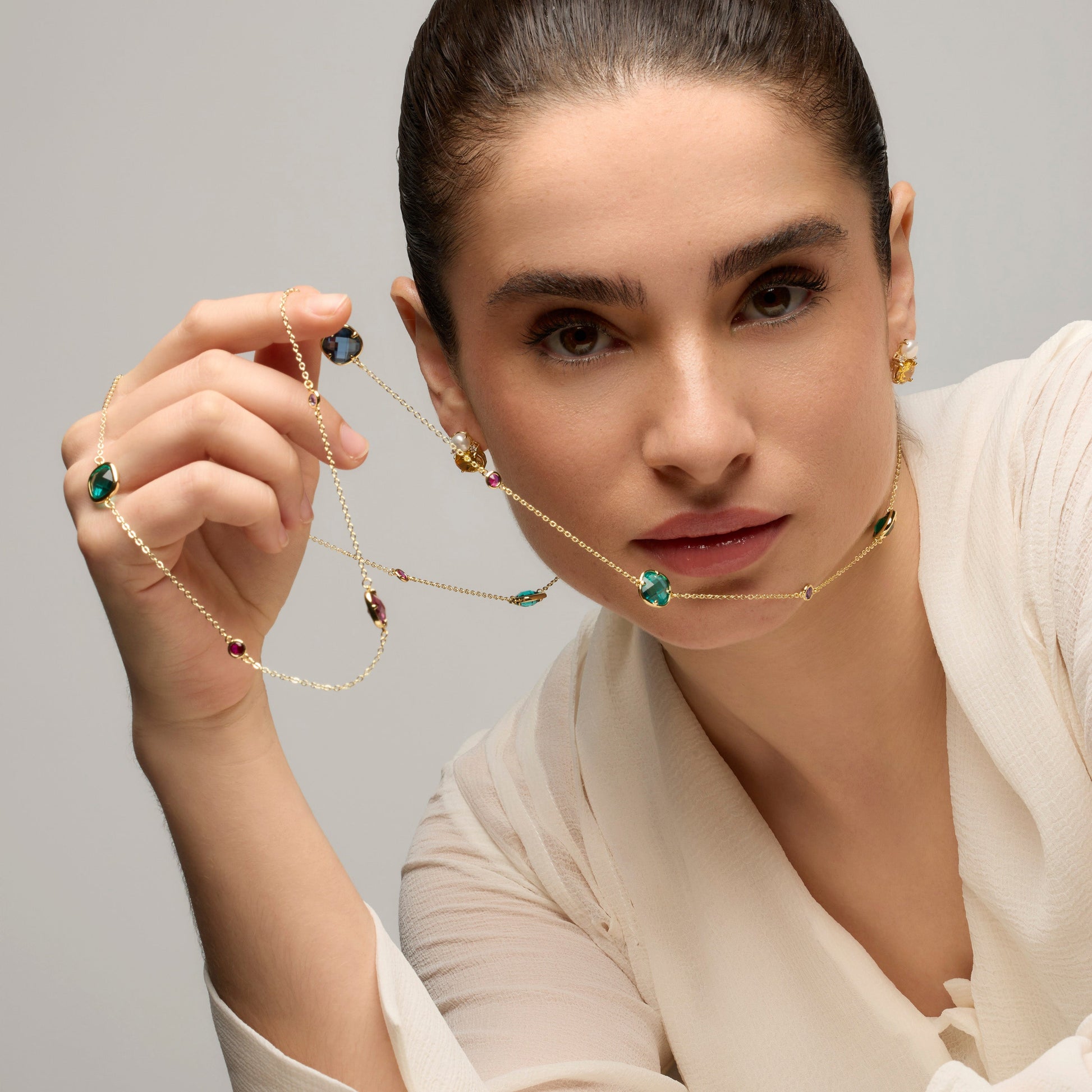Collar con cuarzo hidrotermal multicolor acabado oro amarillo 18k-Docal