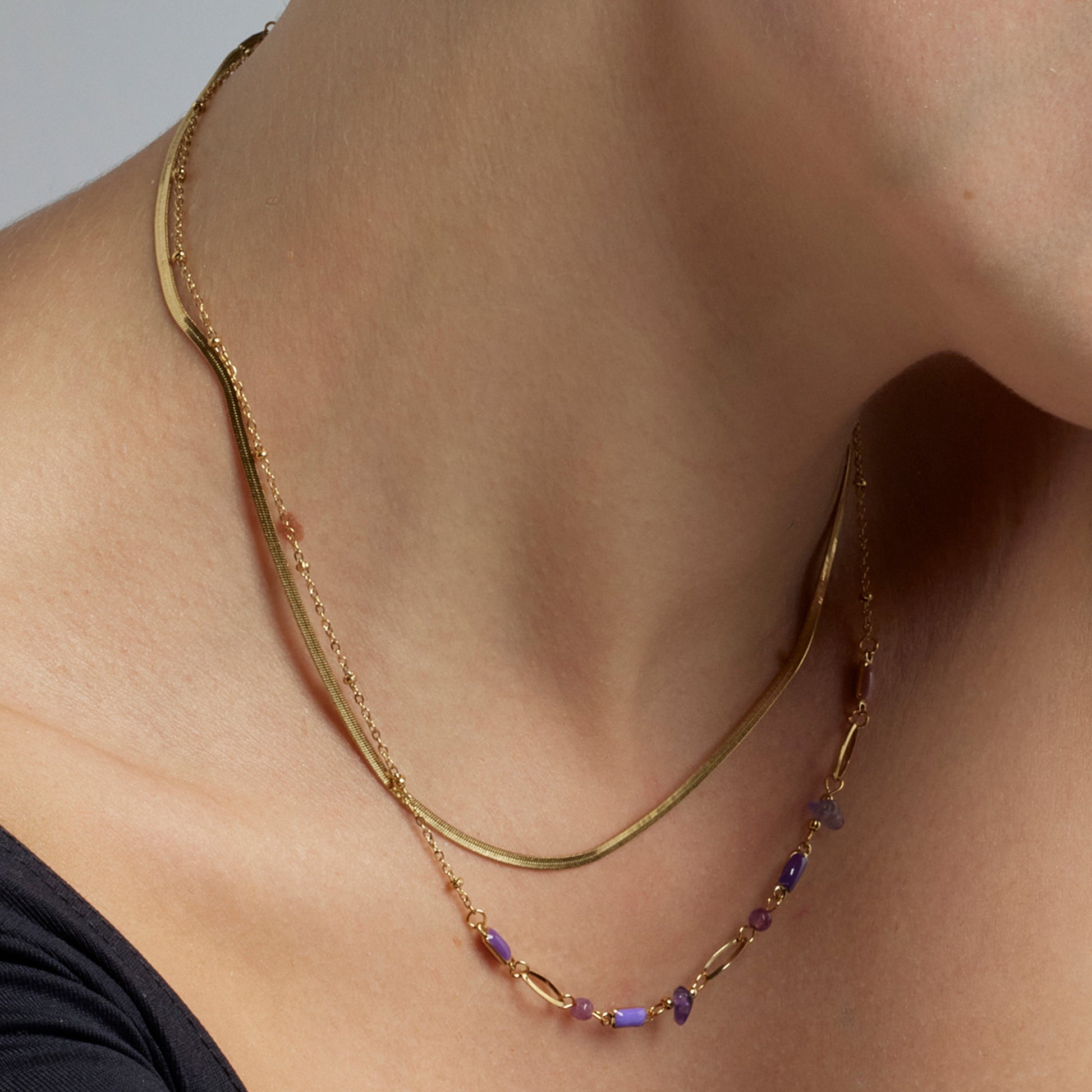 Collar Rysai con Lacado Multicolor acabado oro 18k. El estilo Boho es una estética de espíritu libre que mezcla diferentes culturas y expresiones artísticas en un estilo ecléctico con énfasis en los elementos orgánicos y la naturaleza.