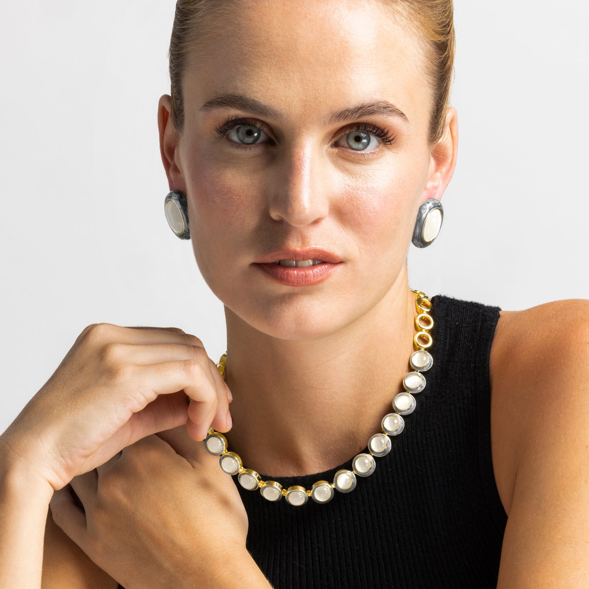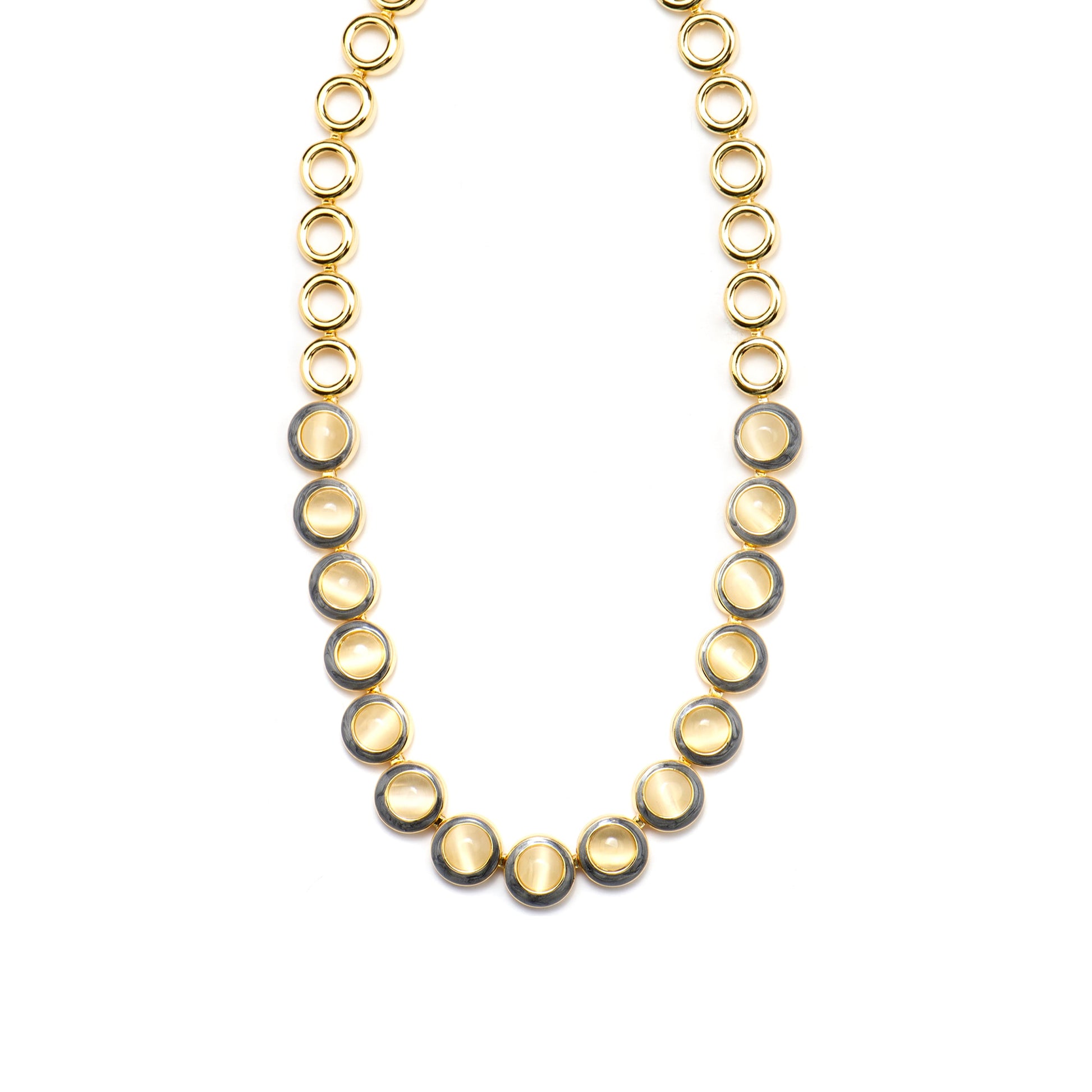 Collar Nawil con Ojo de Gato acabado oro 18k. África se convierte en la línea perfecta para mujeres con personalidad, que no temen arriesgar y lucir piezas con carácter propio.