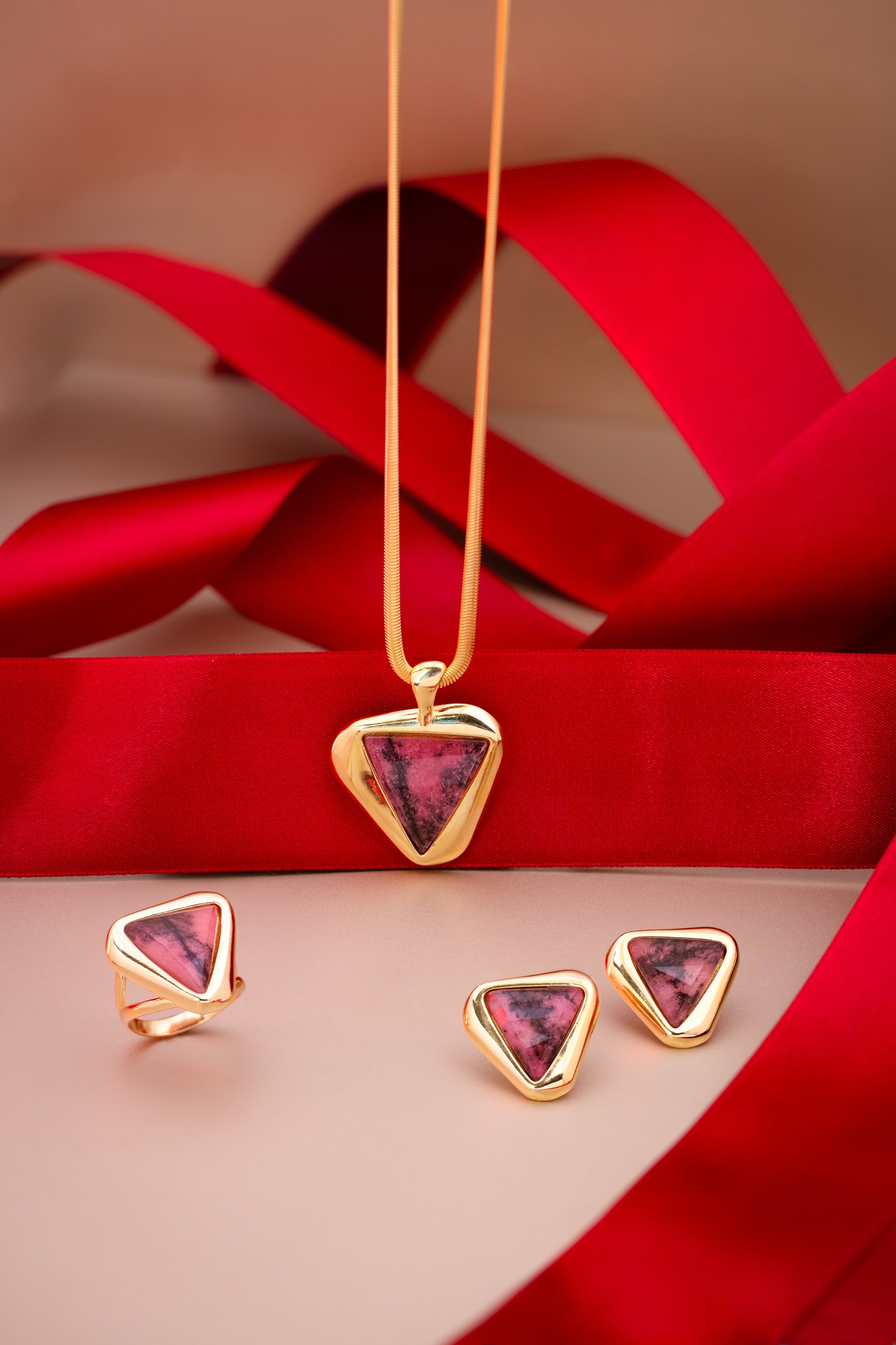 Stones: Faceted Rhodonite, 15x16 mm (studs) and 20x22 mm (pendant)