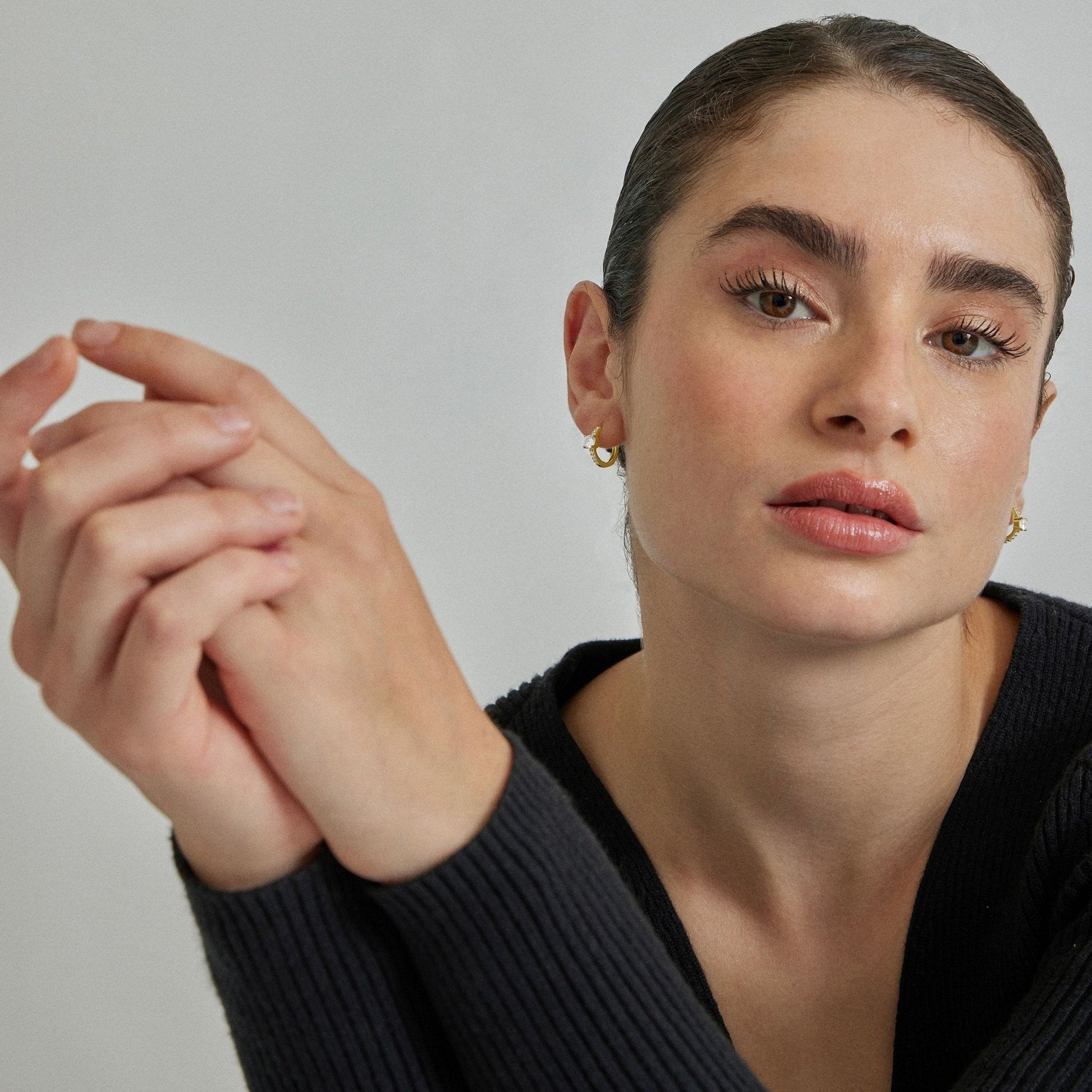 Pendientes Mahne con Circonita Brillante acabado en oro amarillo de 18K. África Basic encarna la sencillez refinada, piezas atemporales con líneas suaves y el brillo adicional de las circonitas. Joyas básicas sin pretensiones que son perfectas para el uso diario, pero también pueden funcionar en ocasiones especiales.