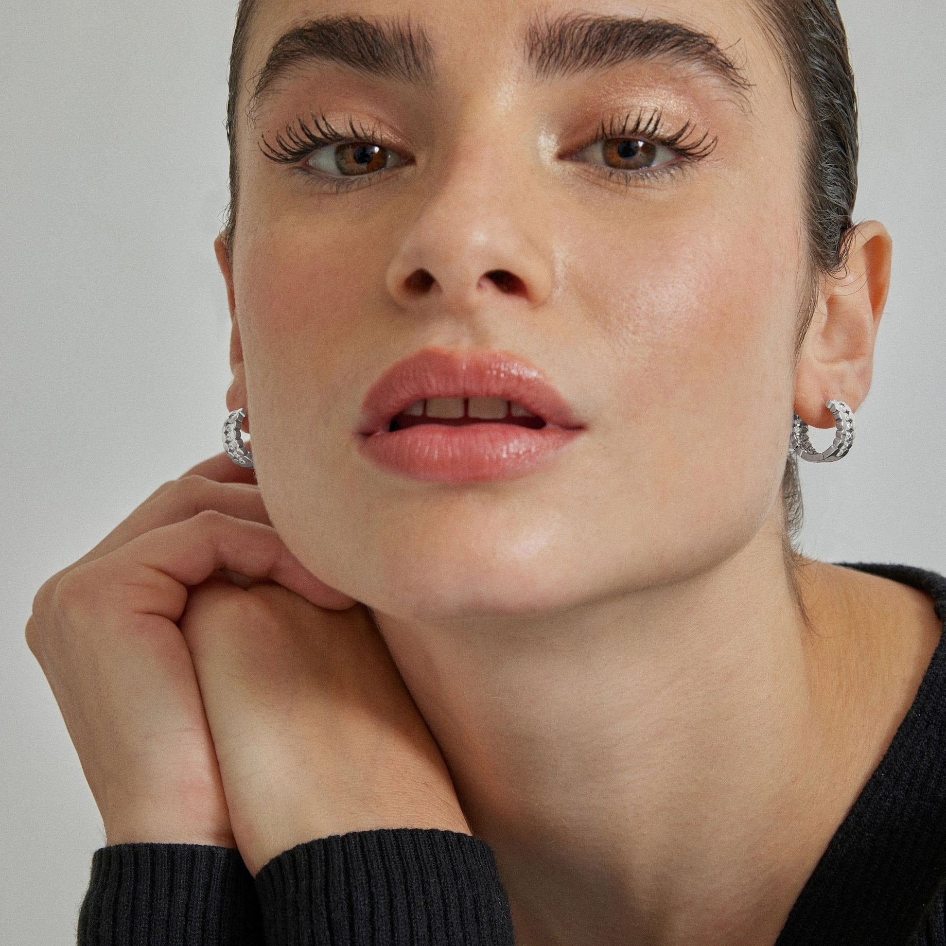 Pendientes Kildom con Circonita Brillante acabado en rodio. África Basic encarna la sencillez refinada, piezas atemporales con líneas suaves y el brillo adicional de las circonitas. Joyas básicas sin pretensiones que son perfectas para el uso diario, pero también pueden funcionar en ocasiones especiales.
