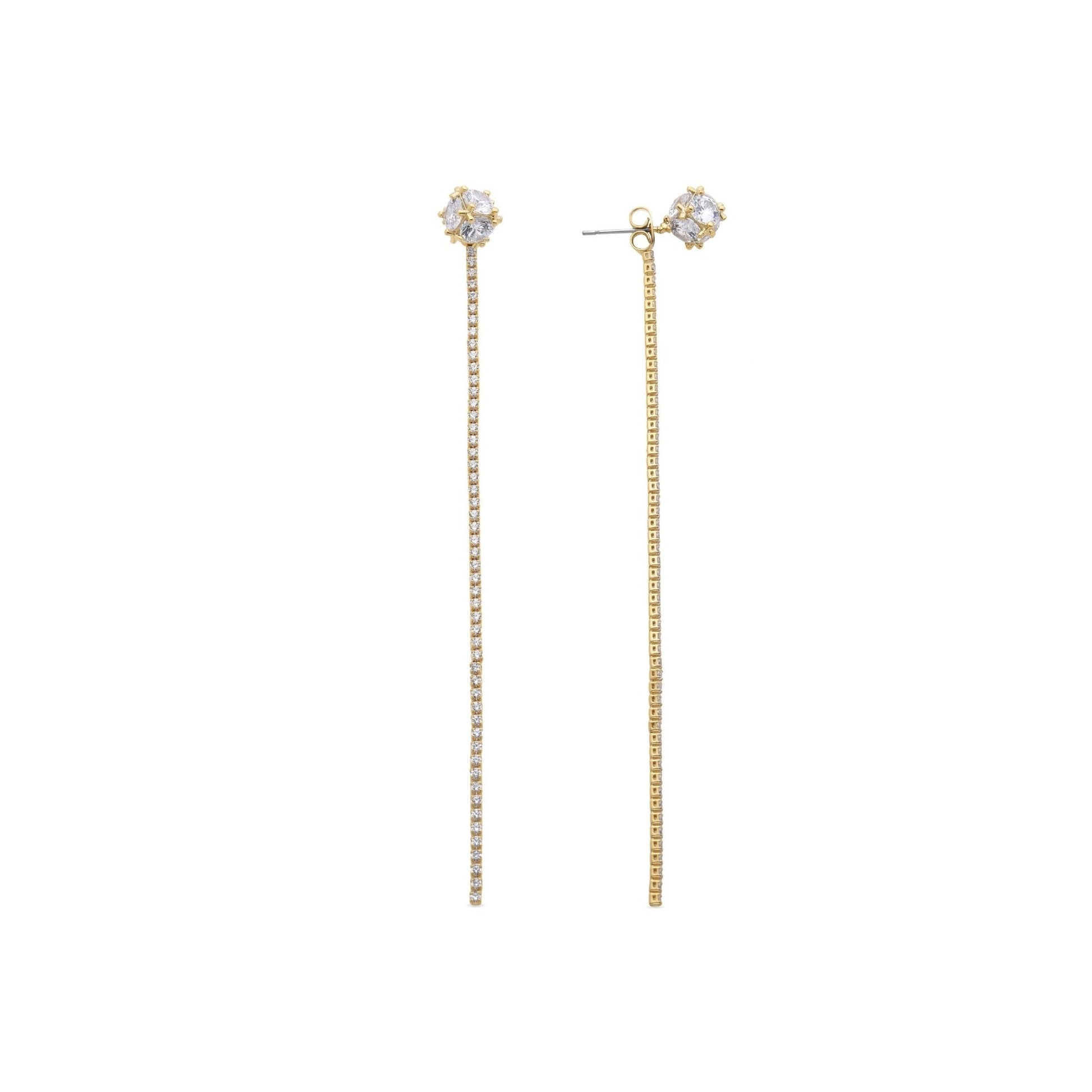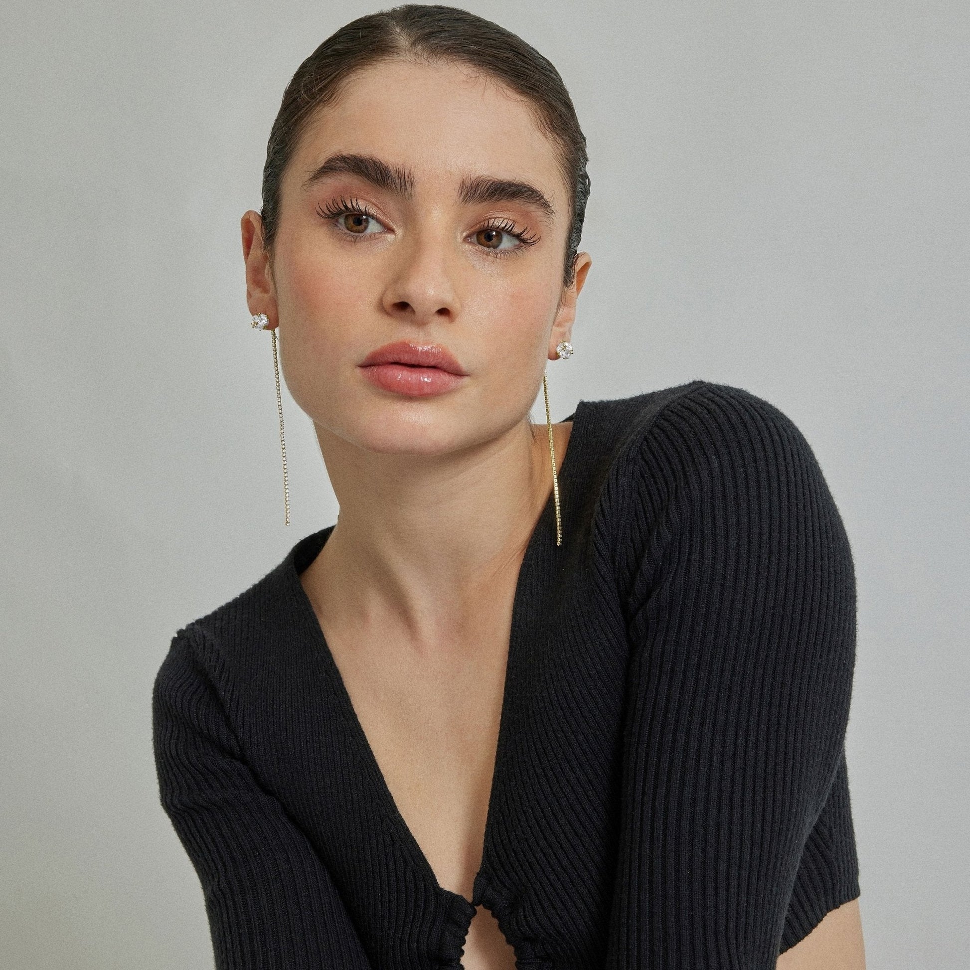 Pendientes Kyur con Circonita Brillante acabado en baño de oro amarillo de 18K. África Basic encarna la sencillez refinada, piezas atemporales con líneas suaves y el brillo adicional de las circonitas. Joyas básicas sin pretensiones que son perfectas para el uso diario, pero también pueden funcionar en ocasiones especiales.