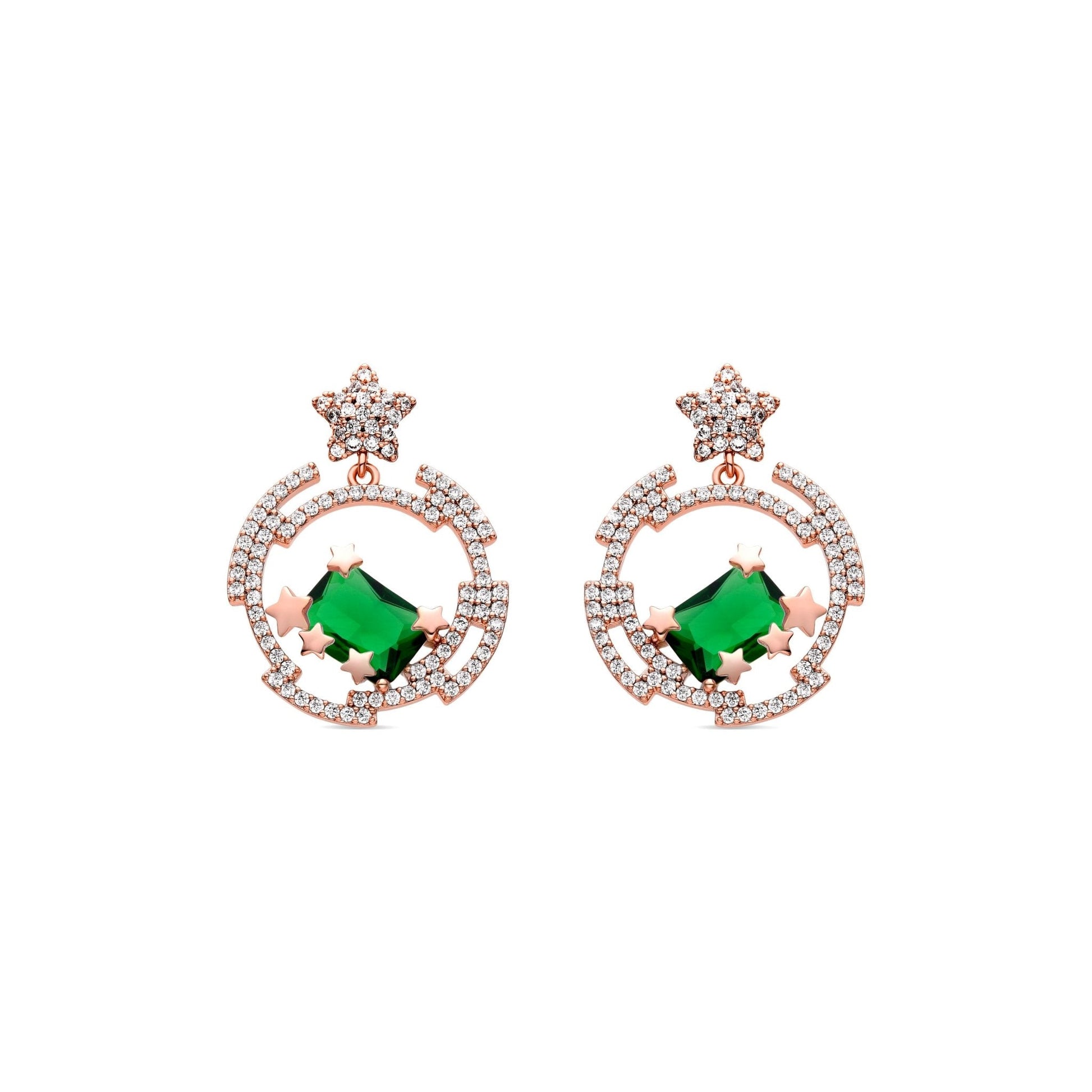 Pendientes Uli de Circonita Esmeralda acabados en oro amarillo de 18K. África se convierte en la línea perfecta para mujeres con personalidad, que no temen arriesgar y lucir piezas con carácter propio.
