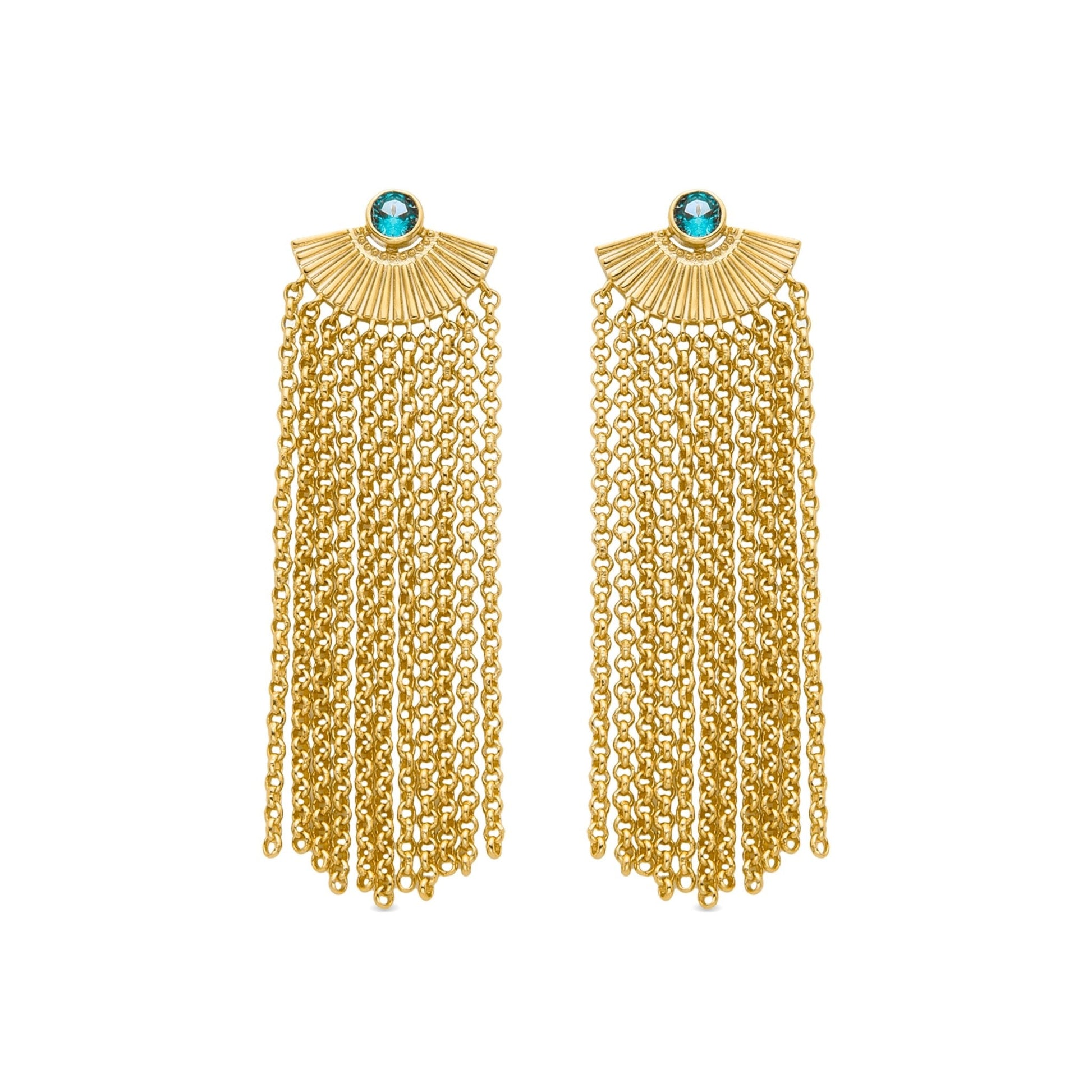 Pendientes Wayio de Cuarzo Hidrotermal Verde Claro acabado en oro amarillo de 18K. África se convierte en la línea perfecta para mujeres con personalidad, que no temen arriesgar y lucir piezas con carácter propio.