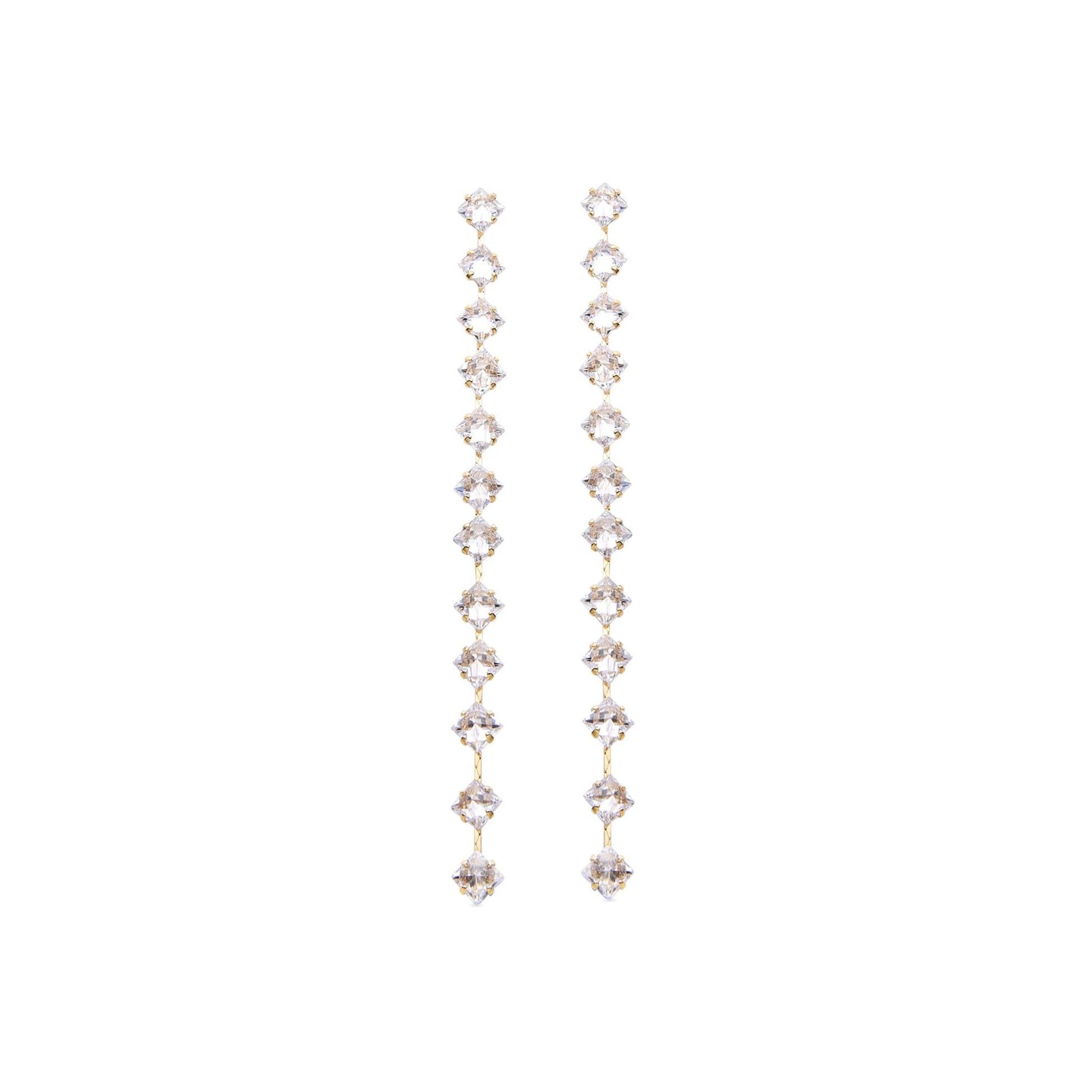 Pendientes Mekmi de Circonita Brillante acabados en baño de oro amarillo de 18 quilates. África Basic encarna la sencillez refinada, piezas atemporales con líneas suaves y el brillo adicional de las circonitas. Joyas básicas sin pretensiones que son perfectas para el uso diario, pero también pueden funcionar en ocasiones especiales.