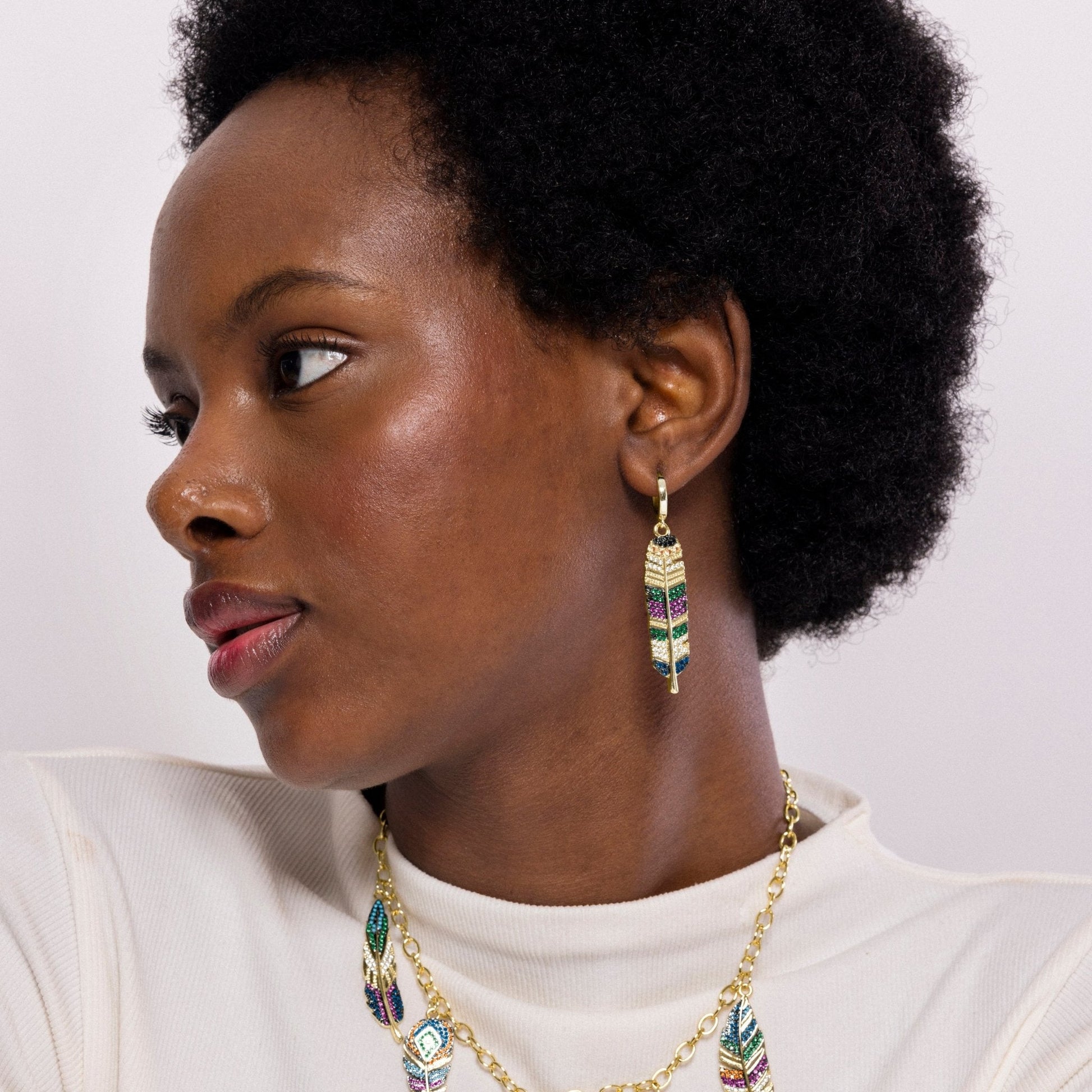 Pendientes de metal Muisem de Circonita Multicolor acabado en oro amarillo de 18k. El estilo Boho es una estética de espíritu libre que mezcla diferentes culturas y expresiones artísticas en un estilo ecléctico con énfasis en los elementos orgánicos y la naturaleza.