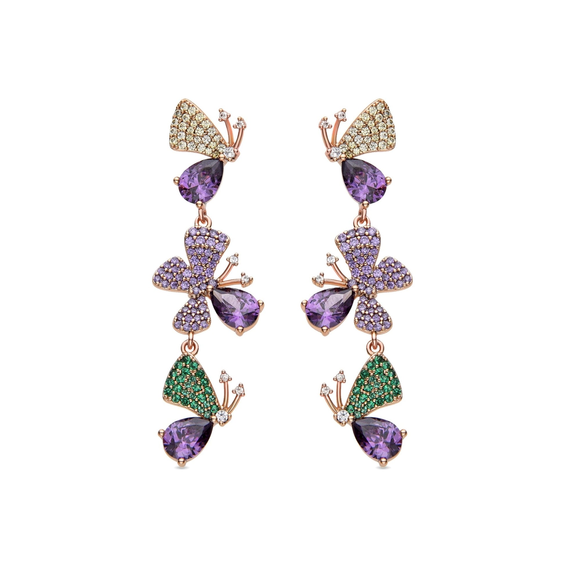 Pendientes Haula de Circonita Amatista acabados en roro rosa De 18K. África se convierte en la línea perfecta para mujeres con personalidad, que no temen arriesgar y lucir piezas con carácter propio.
