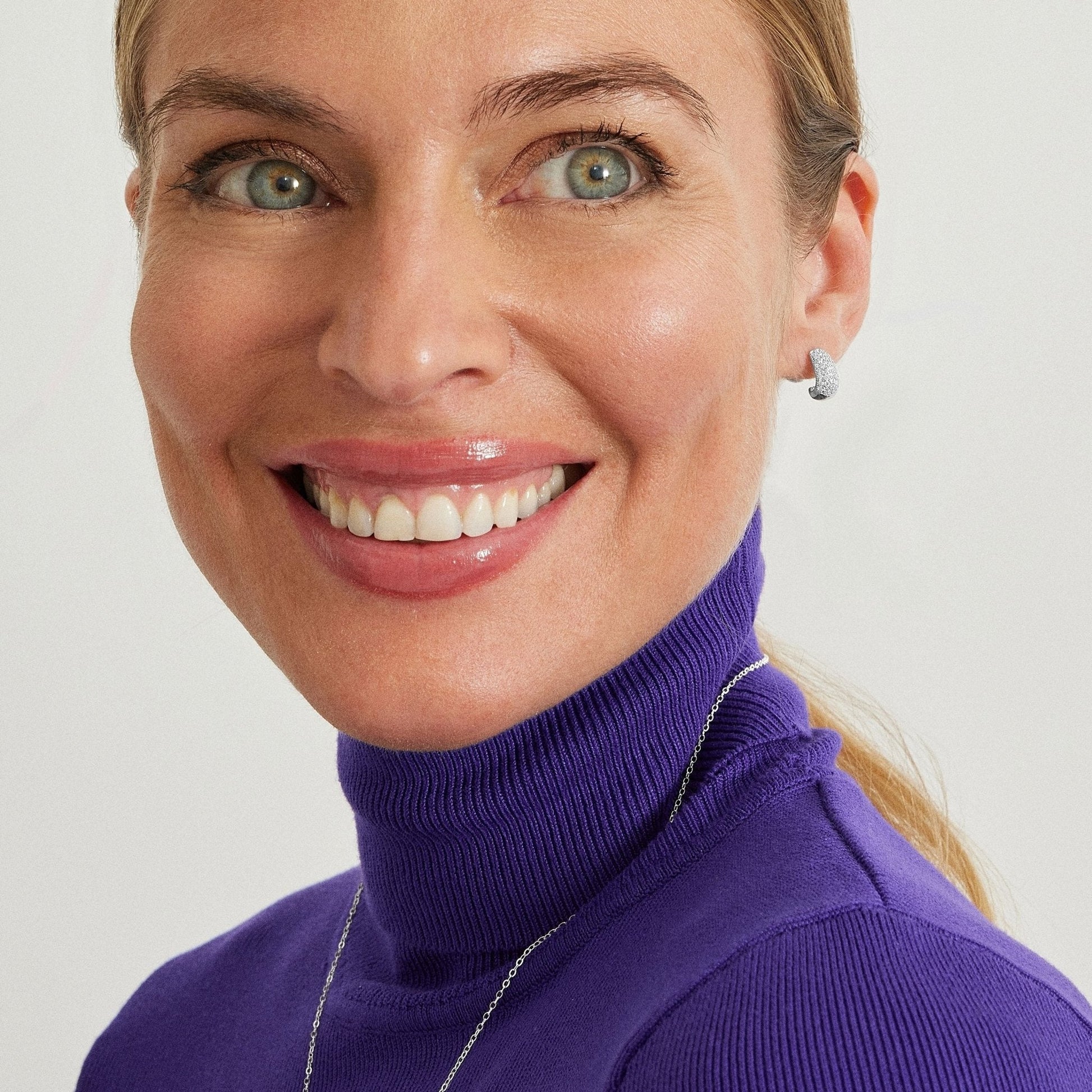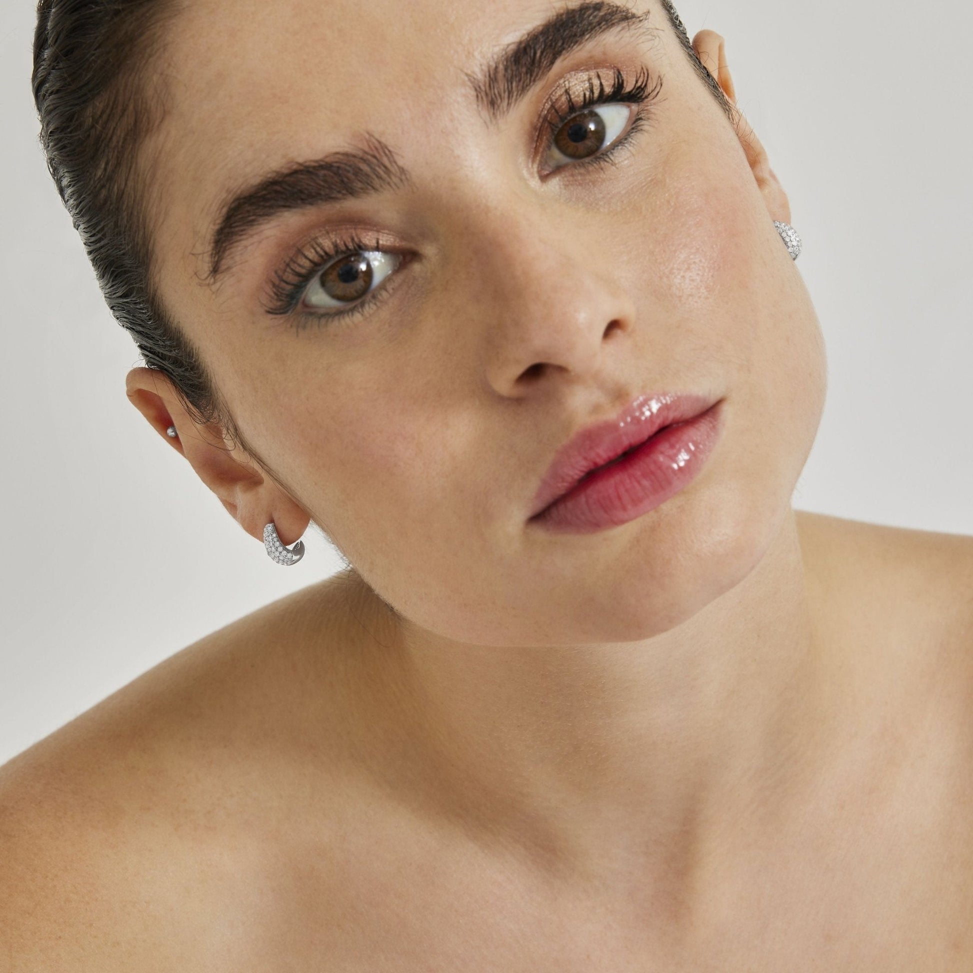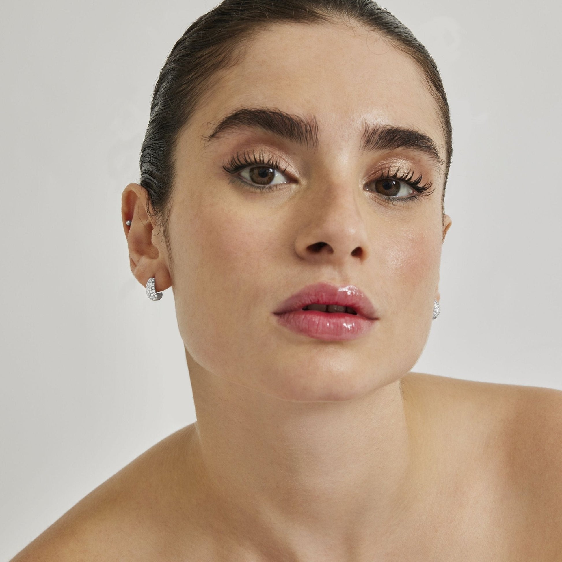 Pendientes Greko con Circonita Brillante acabado en rodio. África Basic encarna la sencillez refinada, piezas atemporales con líneas suaves y el brillo adicional de las circonitas. Joyas básicas sin pretensiones que son perfectas para el uso diario, pero también pueden funcionar en ocasiones especiales.