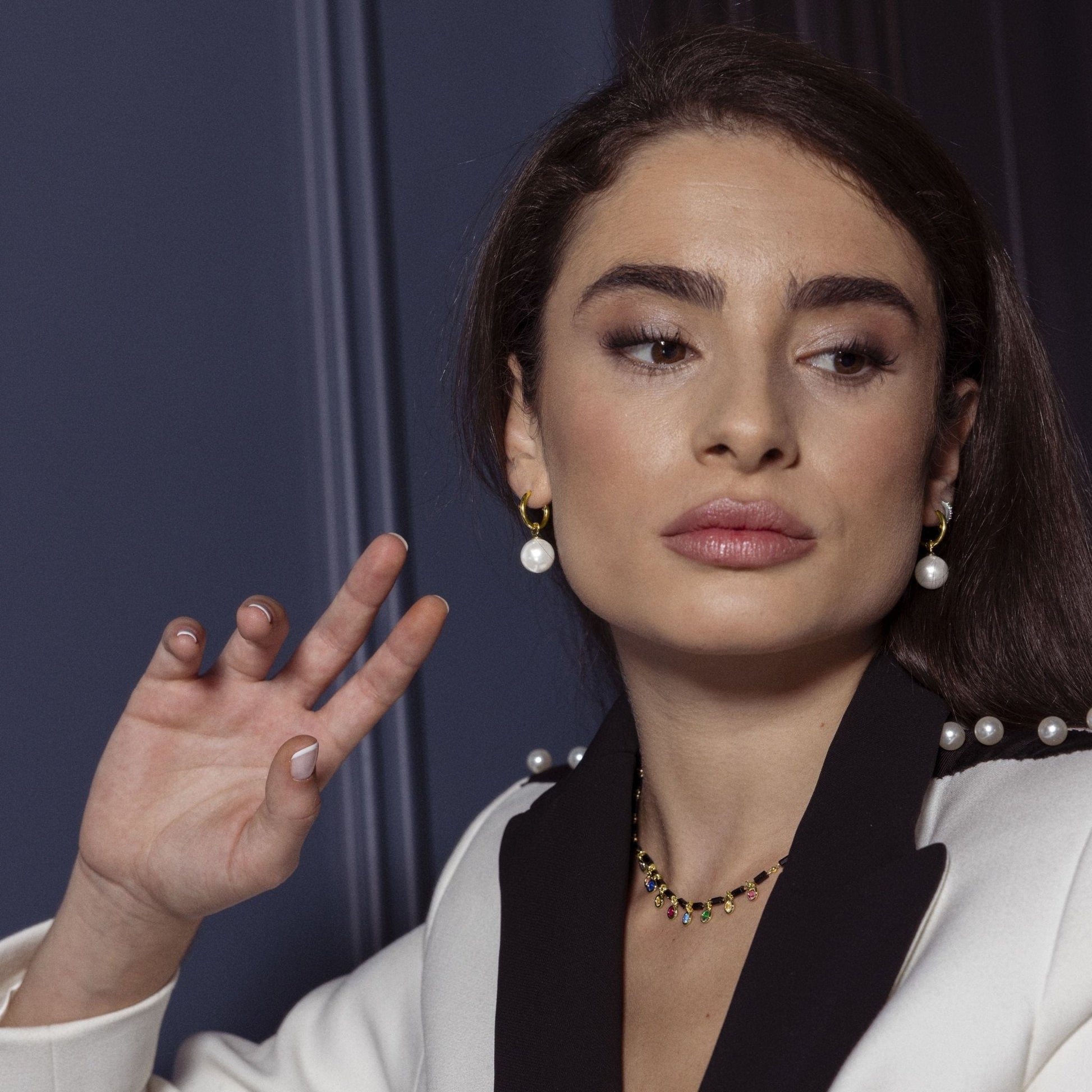 Pendientes Unwe de Perla Blanca acabados en oro amarillo de 18K. África África Basic se convierte en la línea perfecta para mujeres de personalidad, que no temen arriesgar lucir piezas de carácter propio.