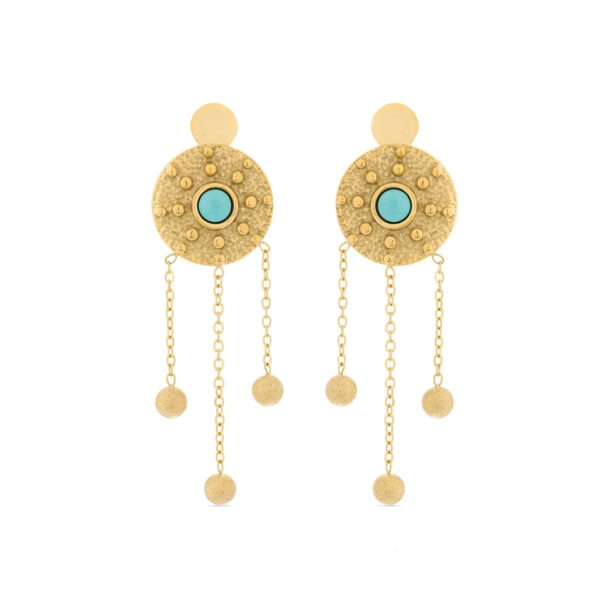 Pendientes Mudat de Turquesa acabado oro 18k. África Moda te sumerge en un mundo de colores vibrantes, texturas exquisitas y diseños artesanales que reflejarán la esencia de tu espirítu.