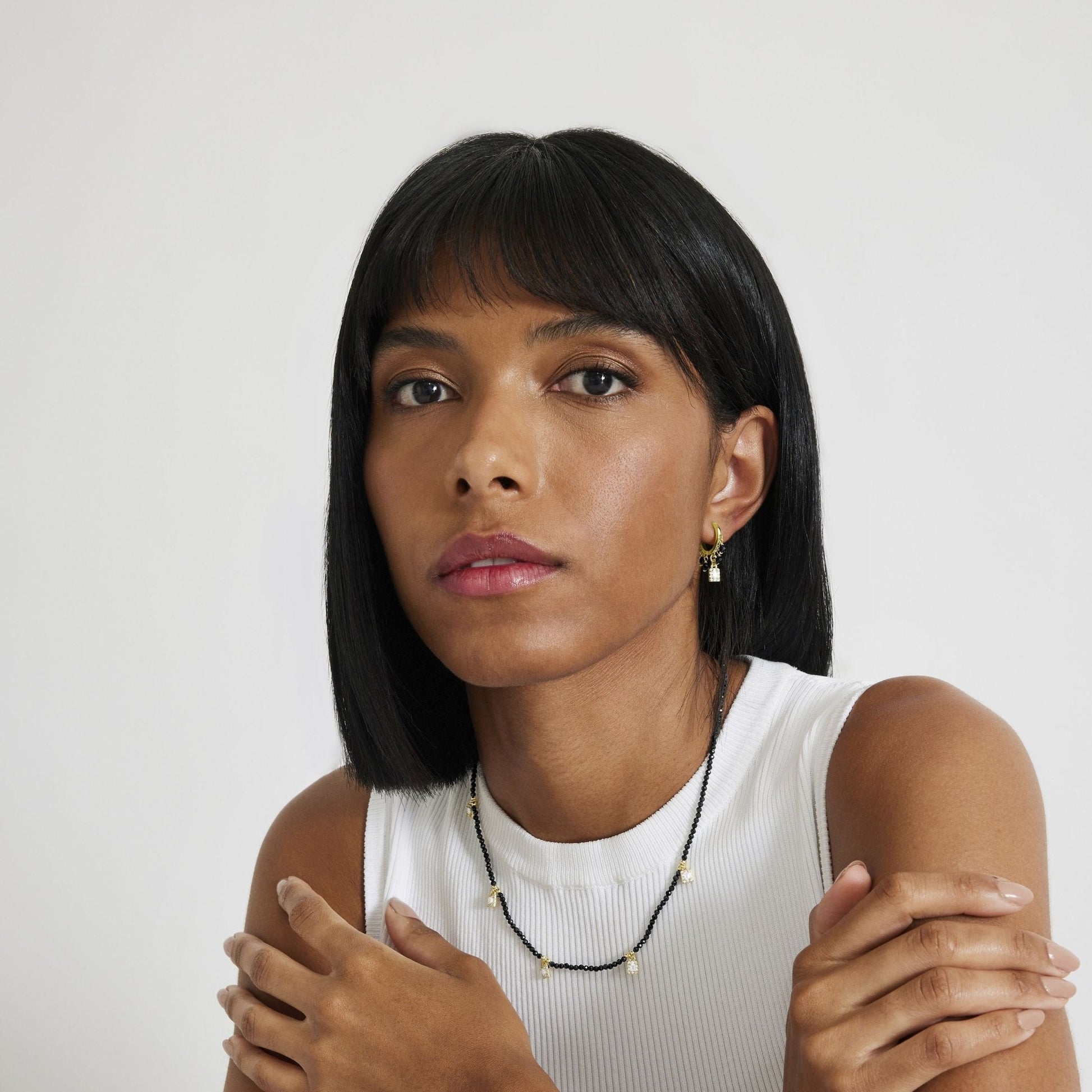 Pendientes Ordzun de Agata Negra acabado oro 18k. África Moda te sumerge en un mundo de colores vibrantes, texturas exquisitas y diseños artesanales que reflejarán la esencia de tu espirítu.