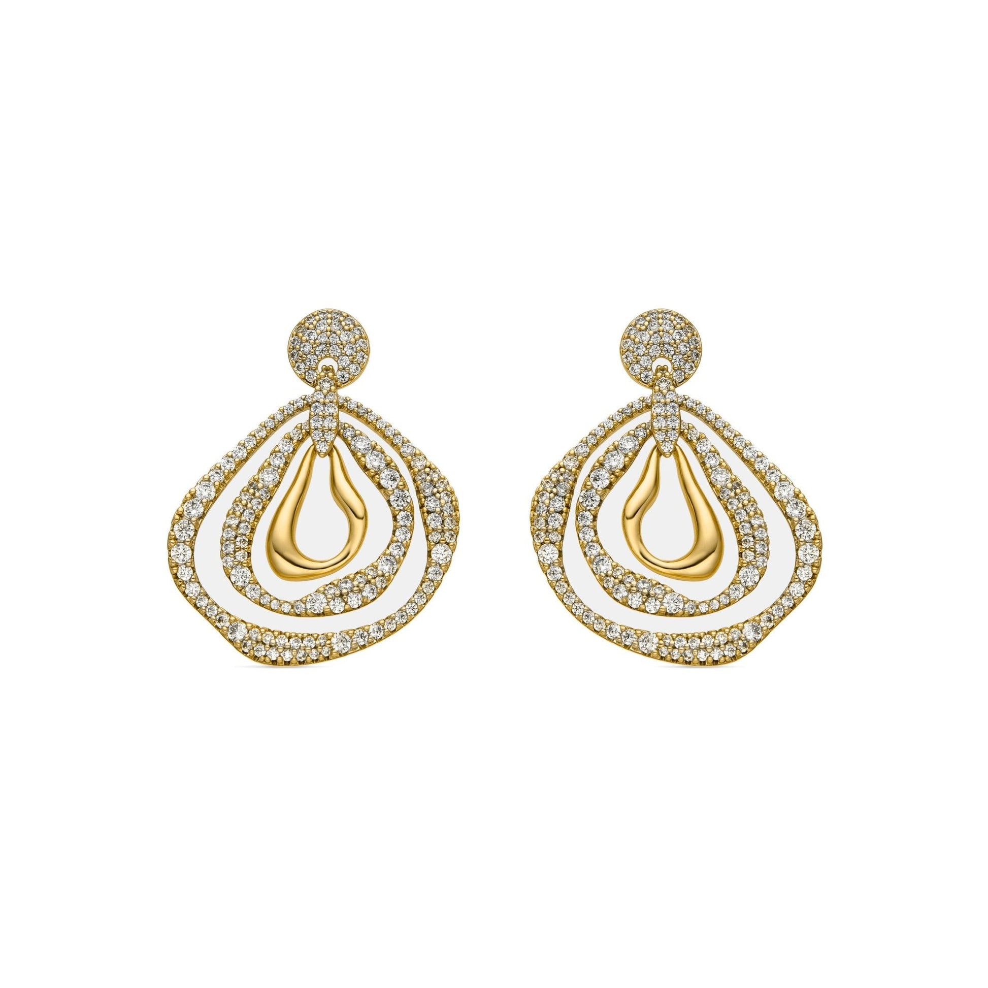 Pendientes Tazdi con Circonita Brillante acabado oro 18k. África se convierte en la línea perfecta para mujeres con personalidad, que no temen arriesgar y lucir piezas con carácter propio.