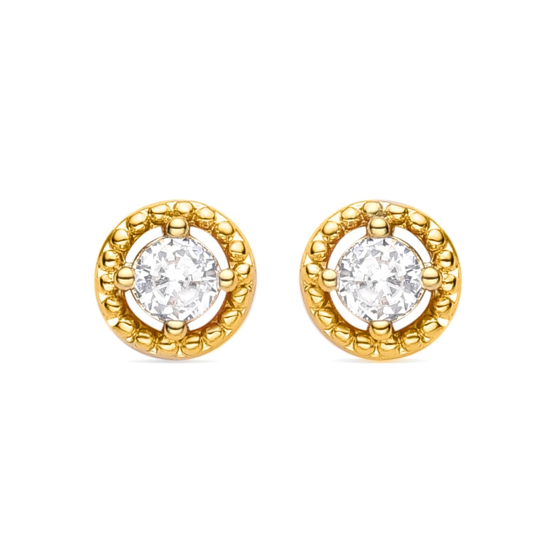 Pendientes Ziaela de Circonita Brillante acabados en baño de oro amarillo de 18 quilates. África Basic encarna la sencillez refinada, piezas atemporales con líneas suaves y el brillo adicional de las circonitas. Joyas básicas sin pretensiones que son perfectas para el uso diario, pero también pueden funcionar en ocasiones especiales.