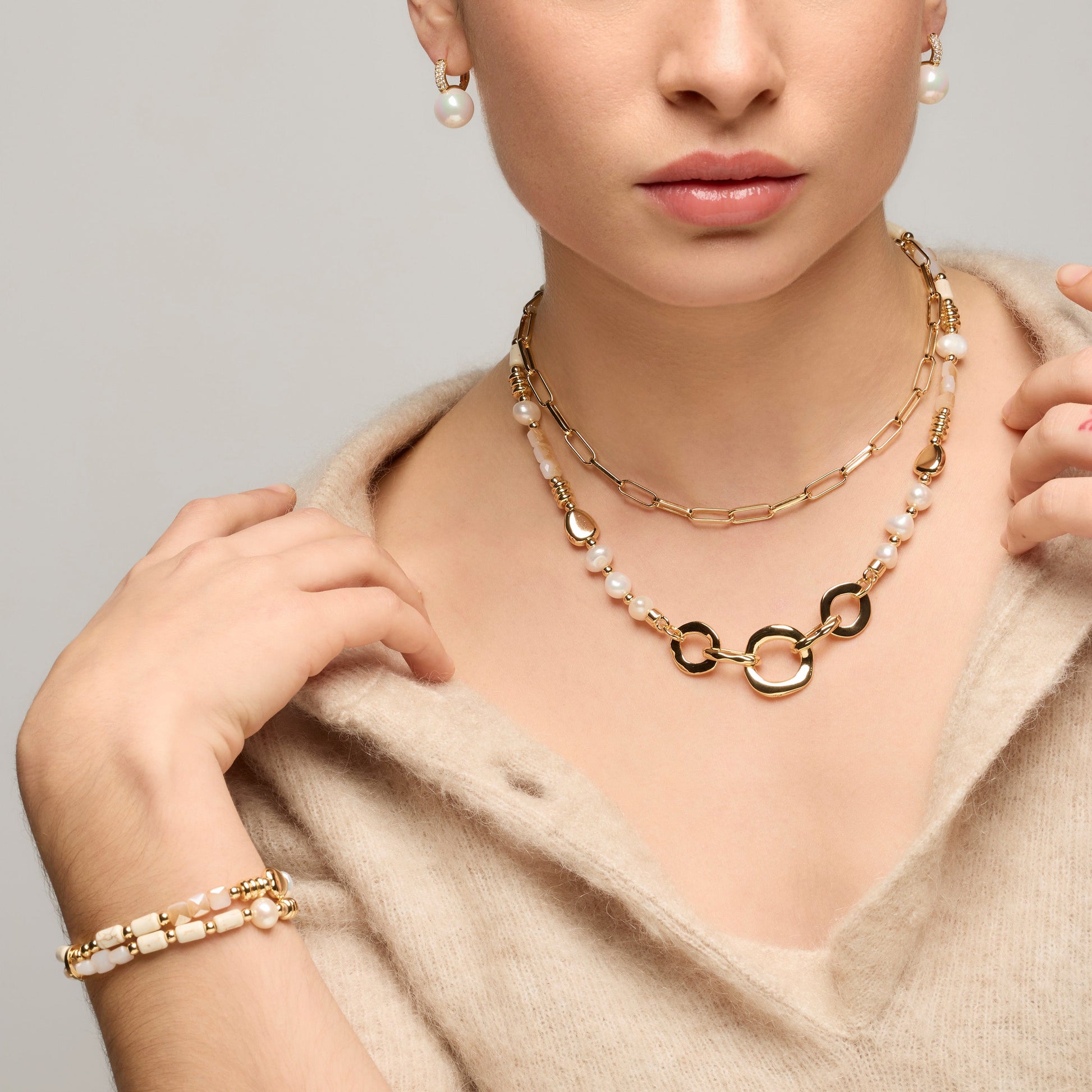 Pendientes acabado oro amarillo de 18k y Perla Blanca - Maeki