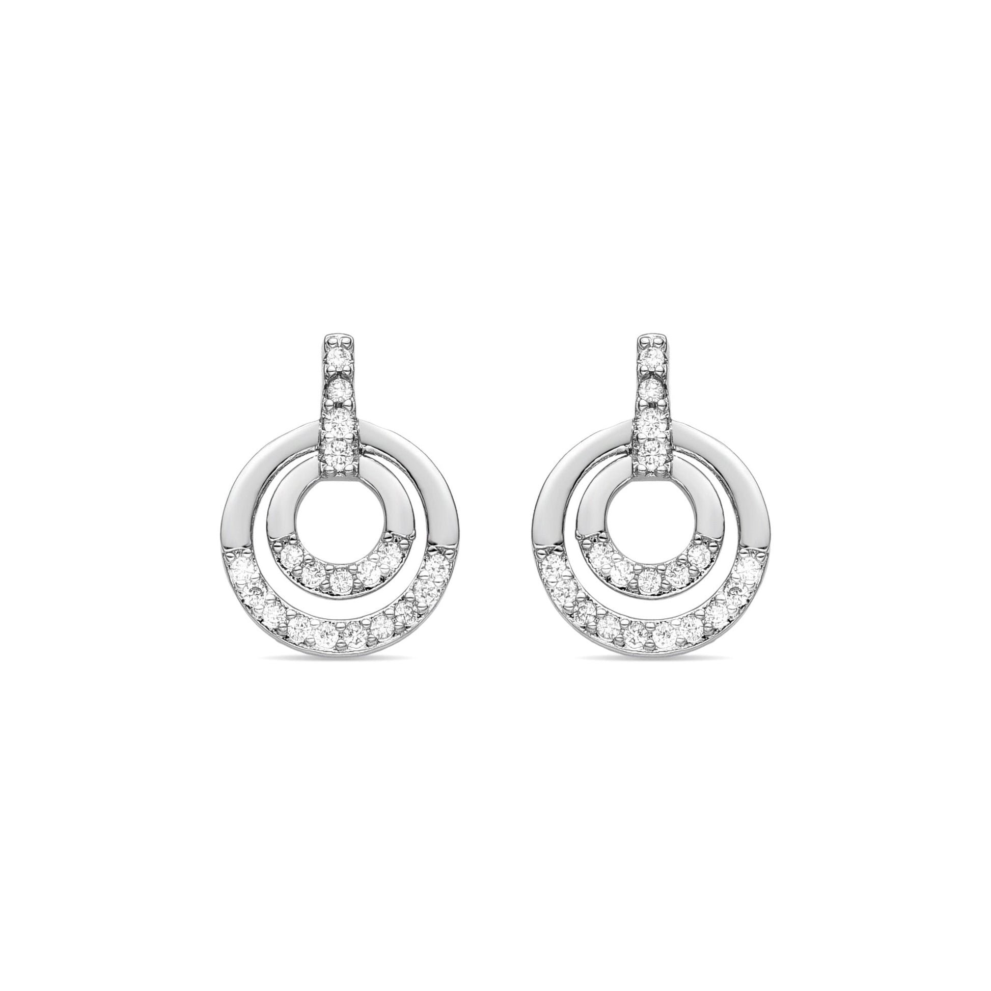 Pendientes Sada de Circonita Brillante acabado plata. África Basic encarna la sencillez refinada, piezas atemporales con líneas suaves y el brillo adicional de las circonitas. Joyas básicas sin pretensiones que son perfectas para el uso diario, pero también pueden funcionar en ocasiones especiales.