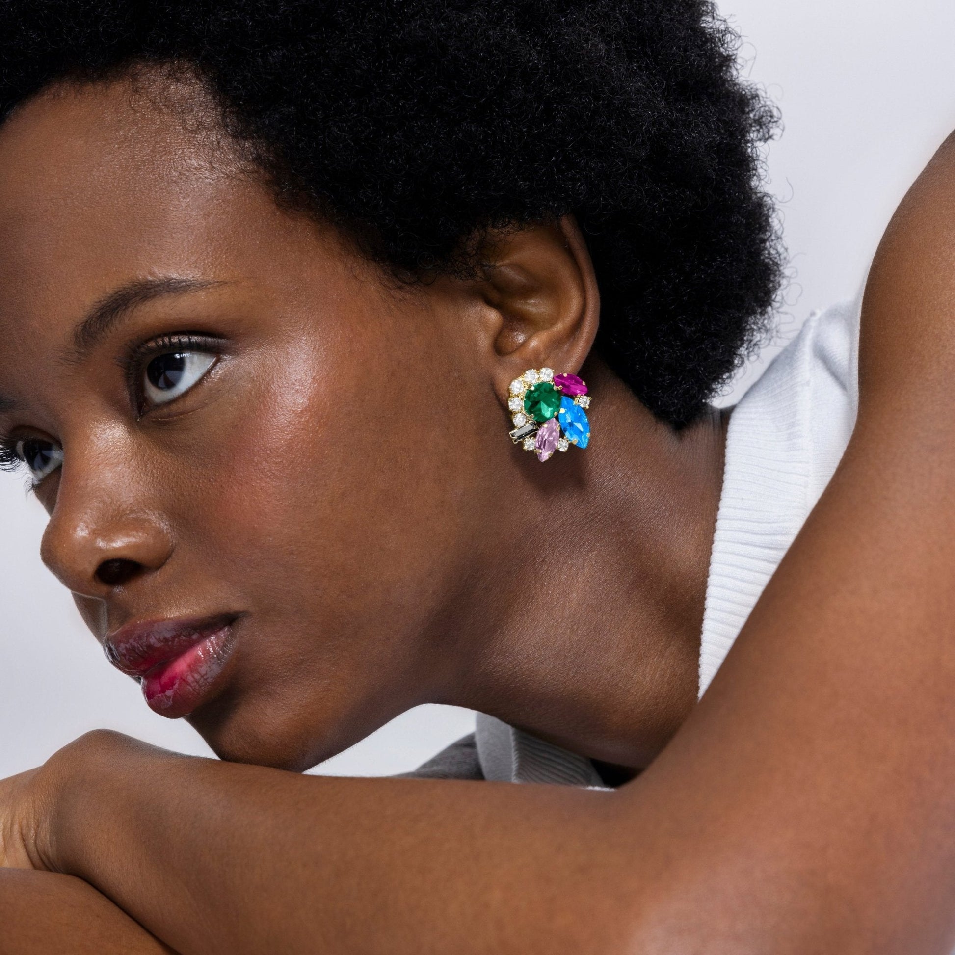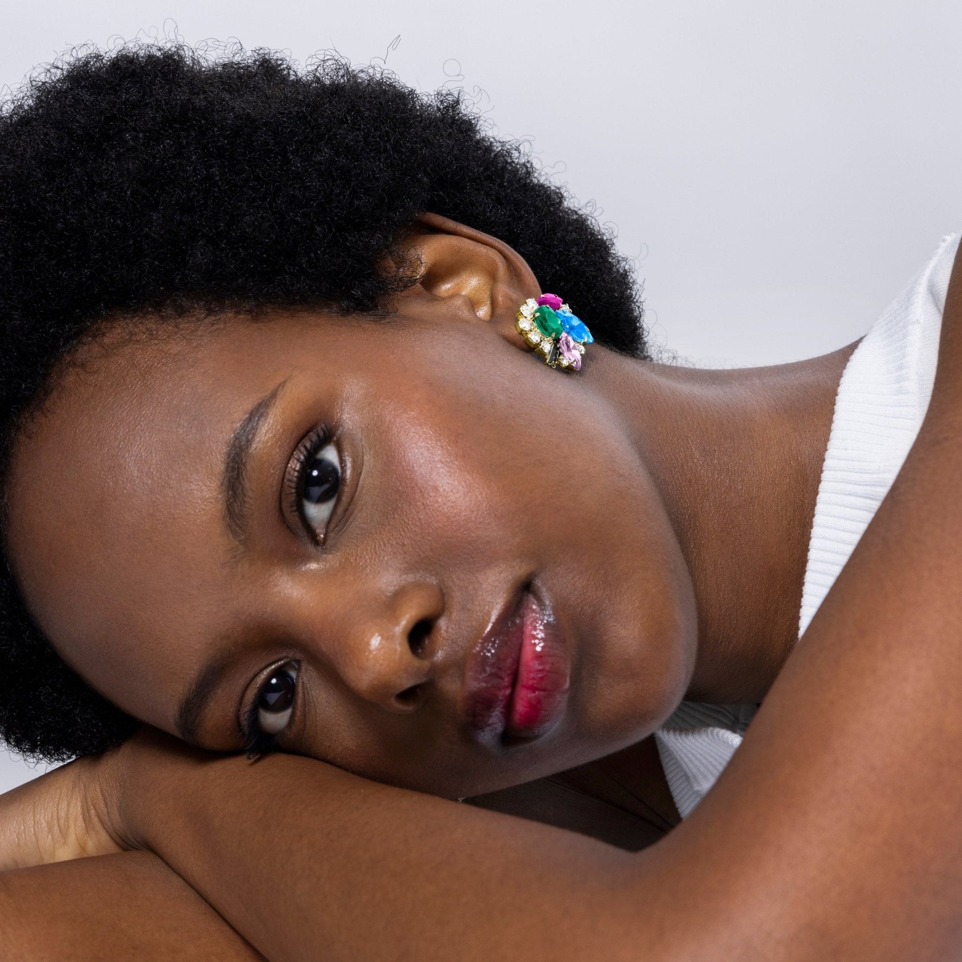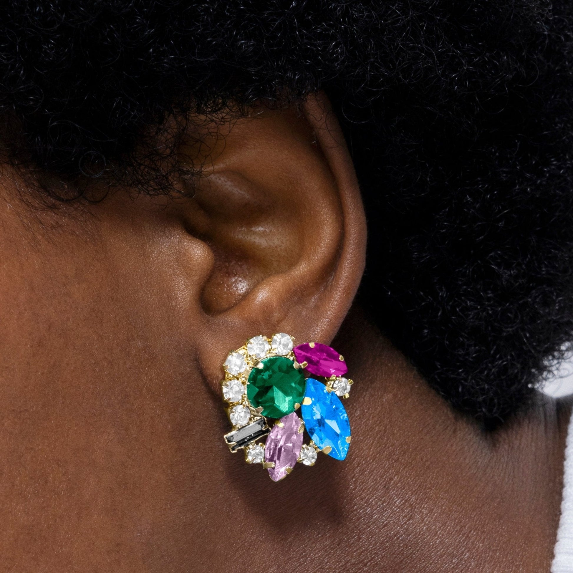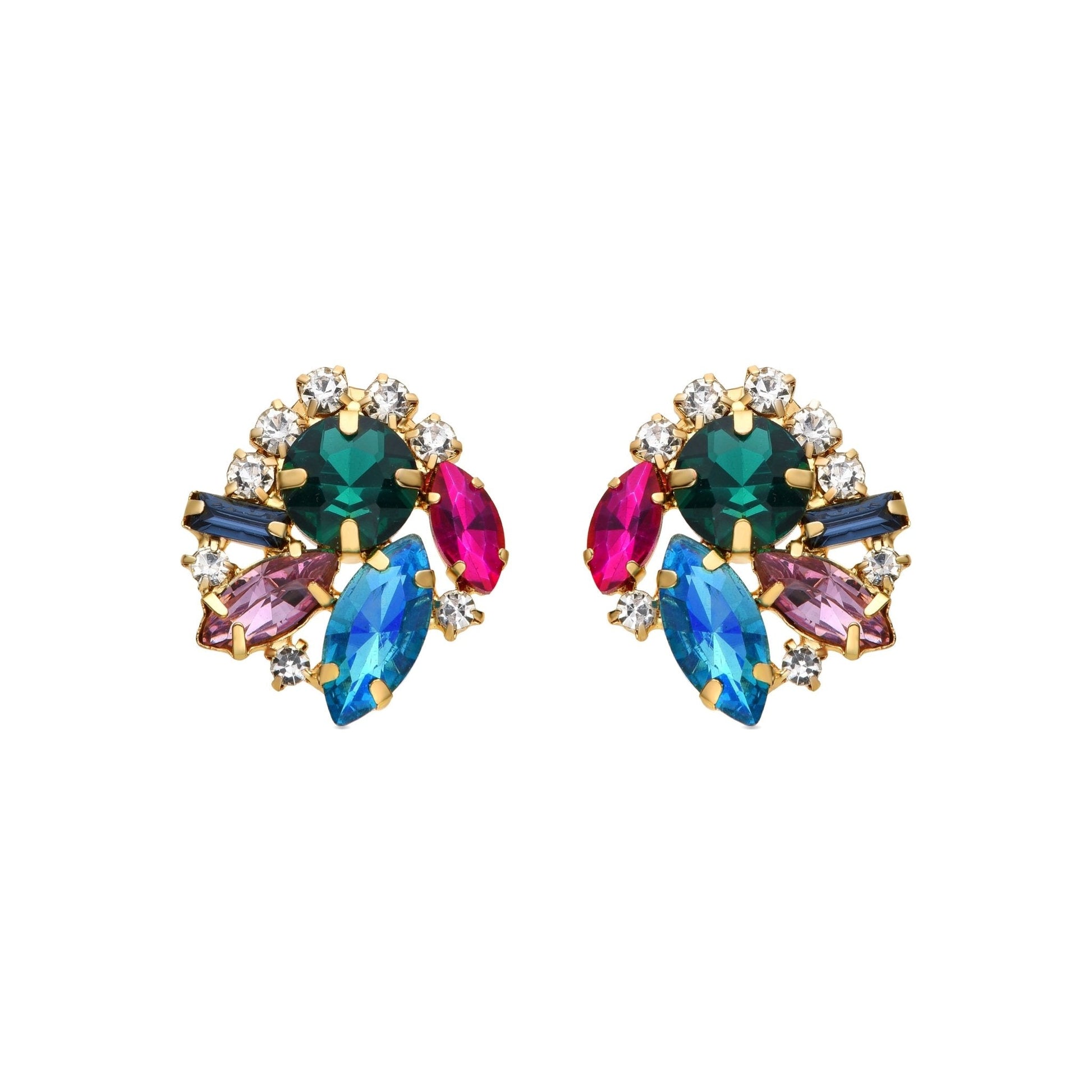 Pendientes Nyuva de Cristal Azul acabados en oro amarillo de 18k.
