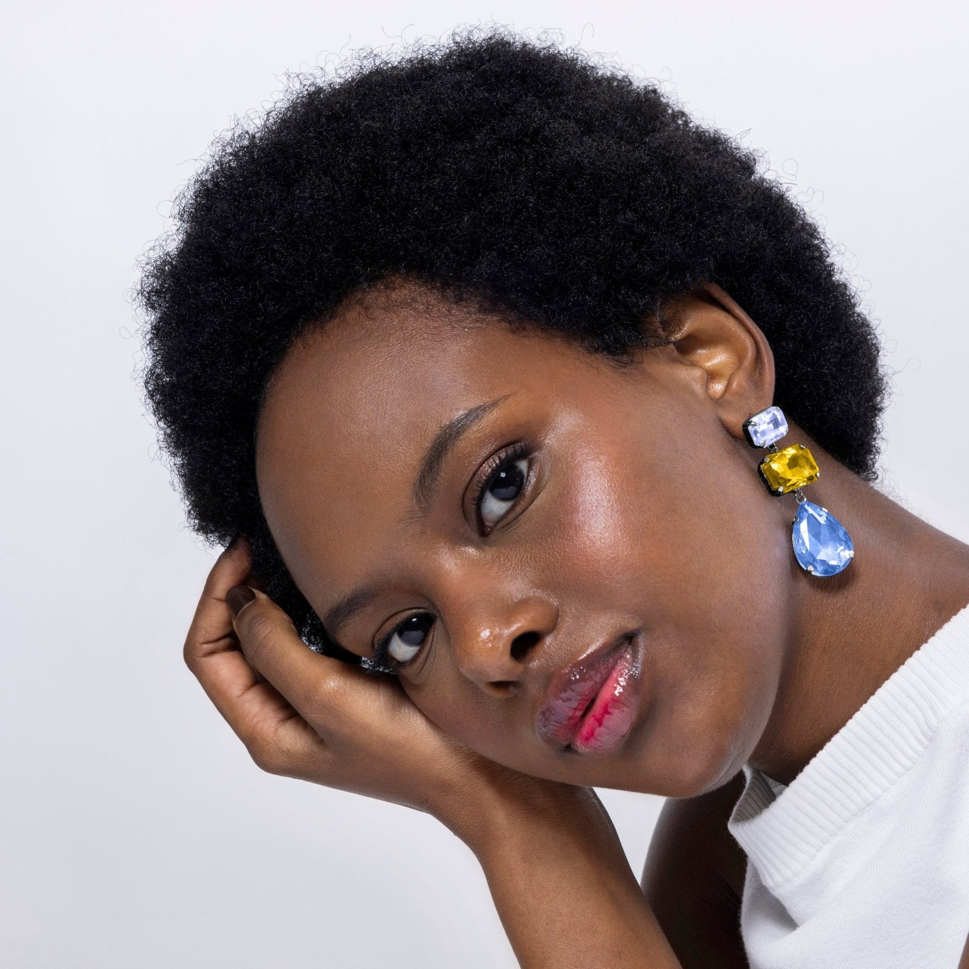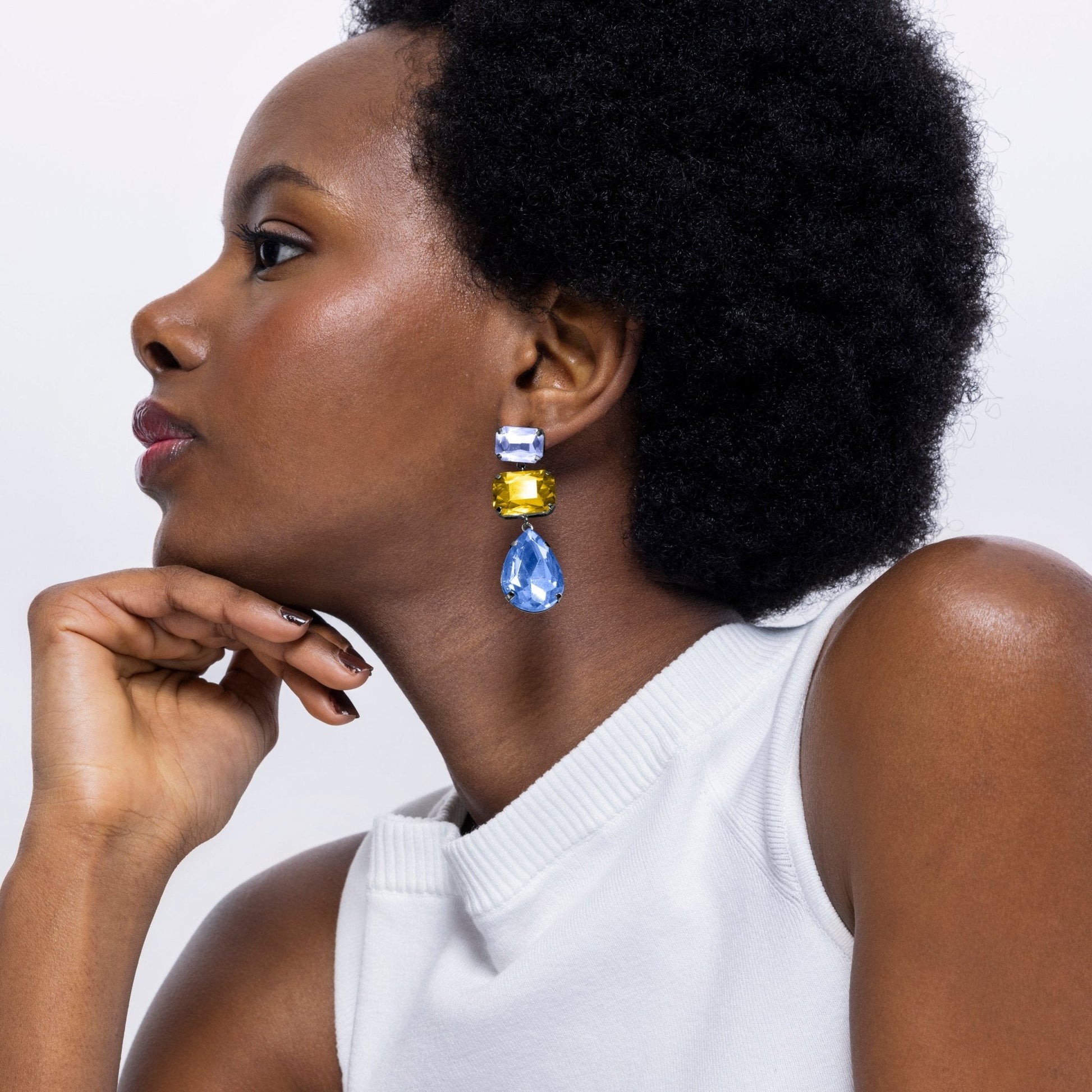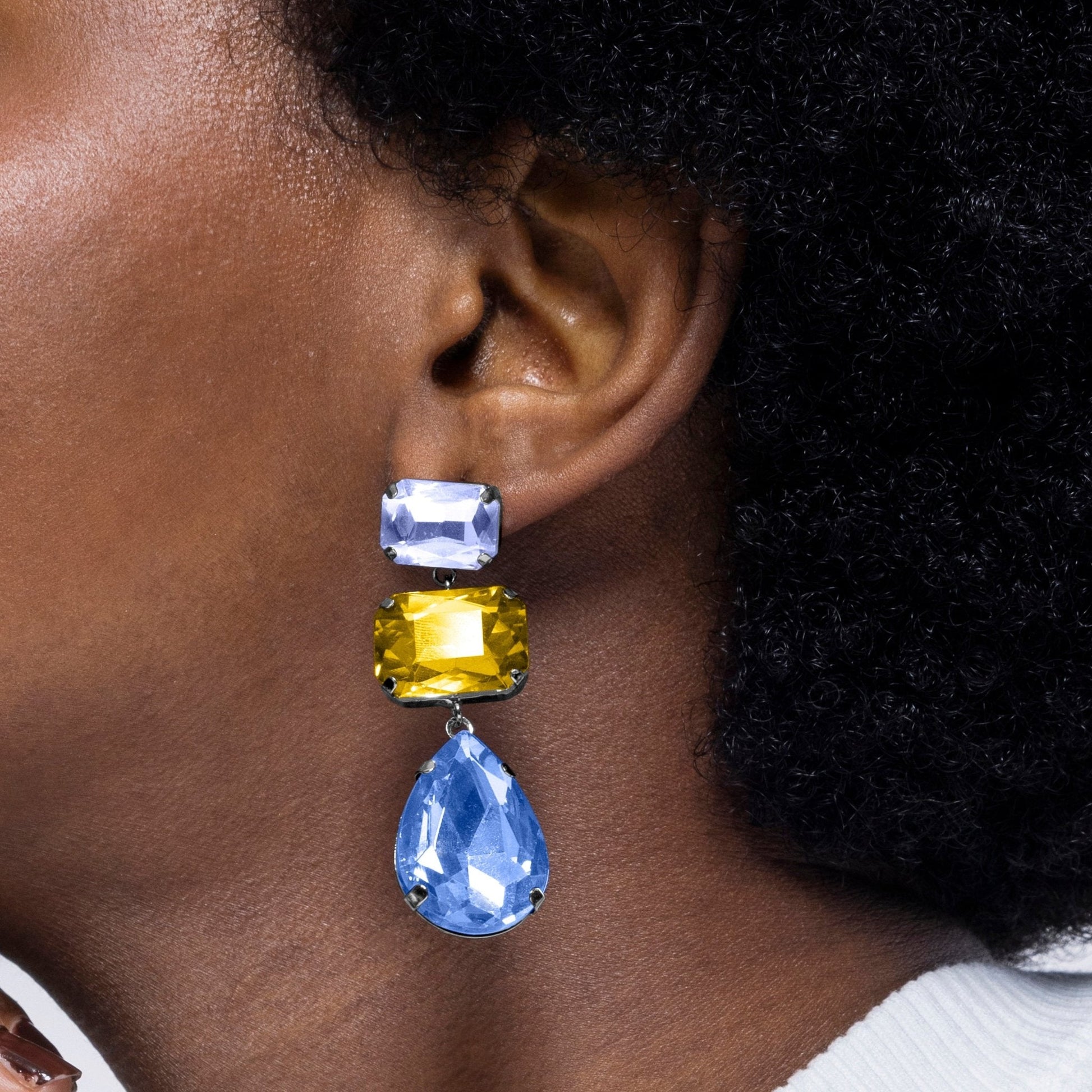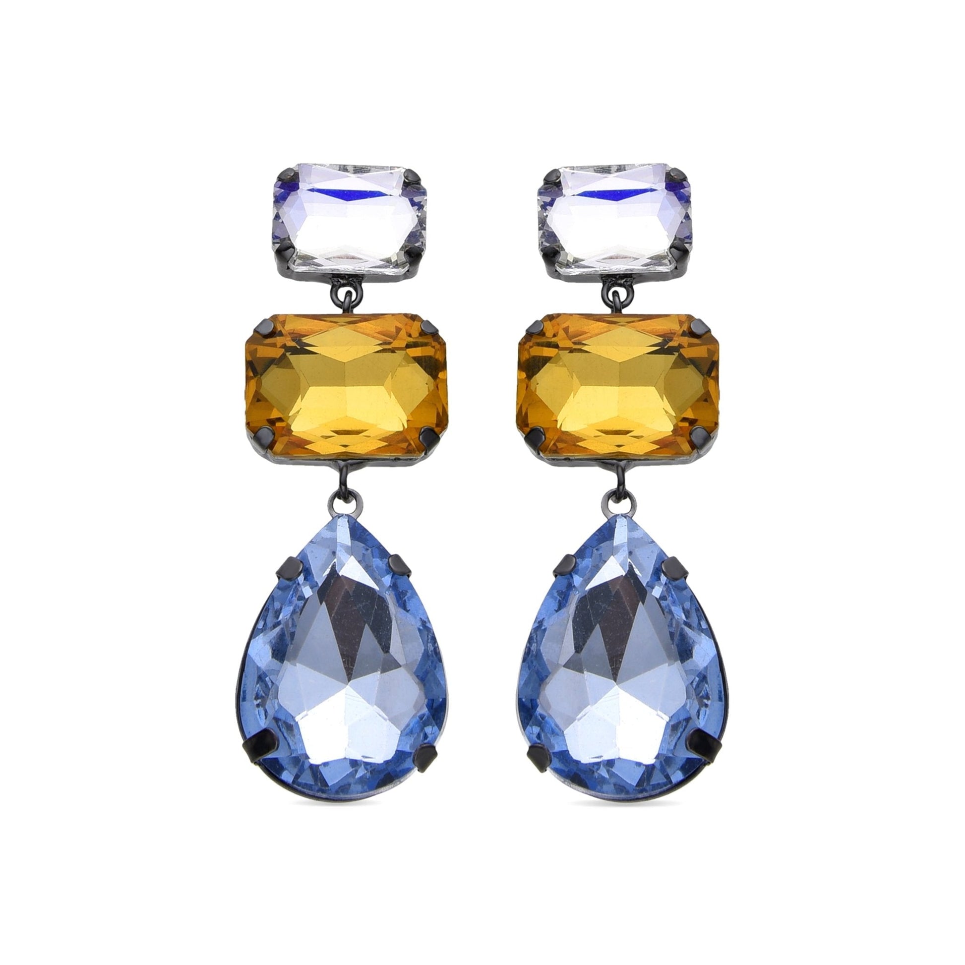 Pendientes Ifar de Cristal Azul acabados en oro amarillo de 18k.