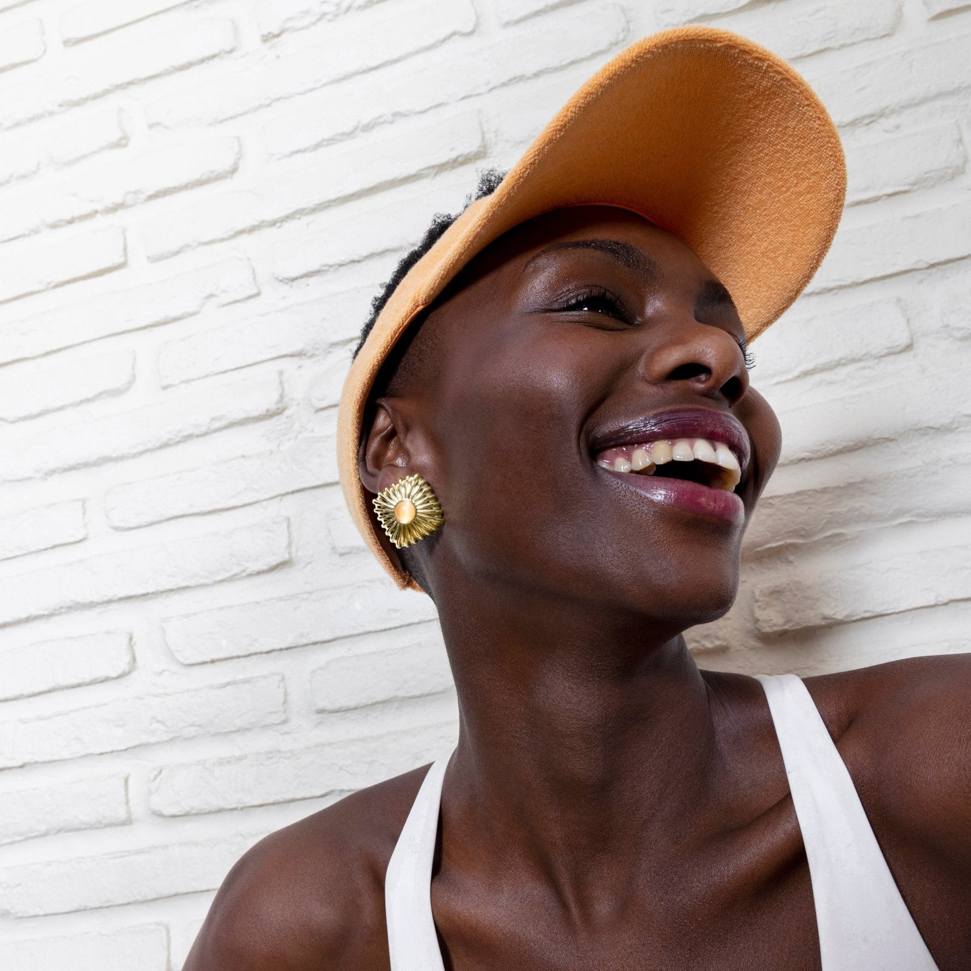 Pendientes Raimra de Ojo de Gato Naranja acabados en oro amarillo de 18k. África se convierte en la línea perfecta para mujeres con personalidad, que no temen arriesgar y lucir piezas con carácter propio.