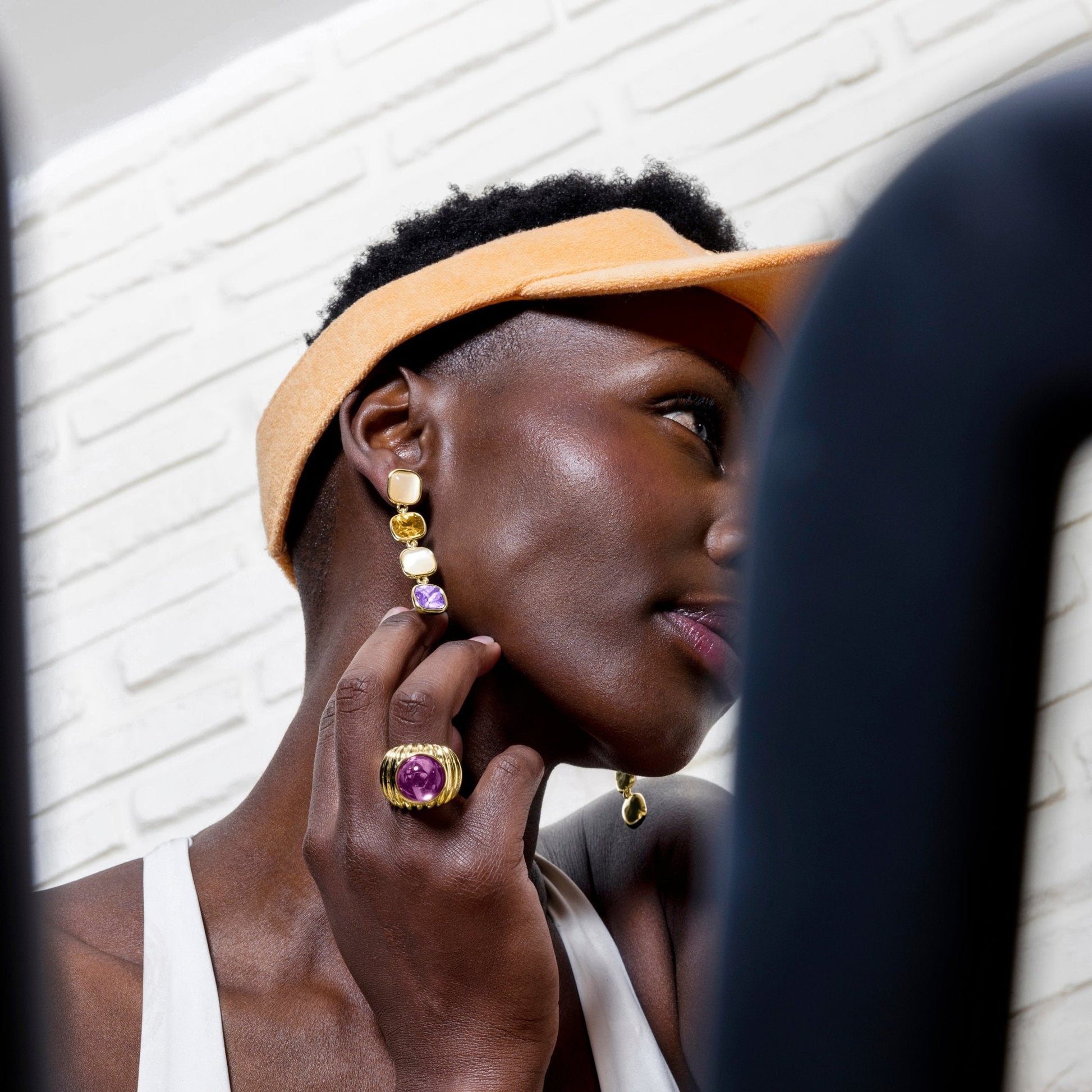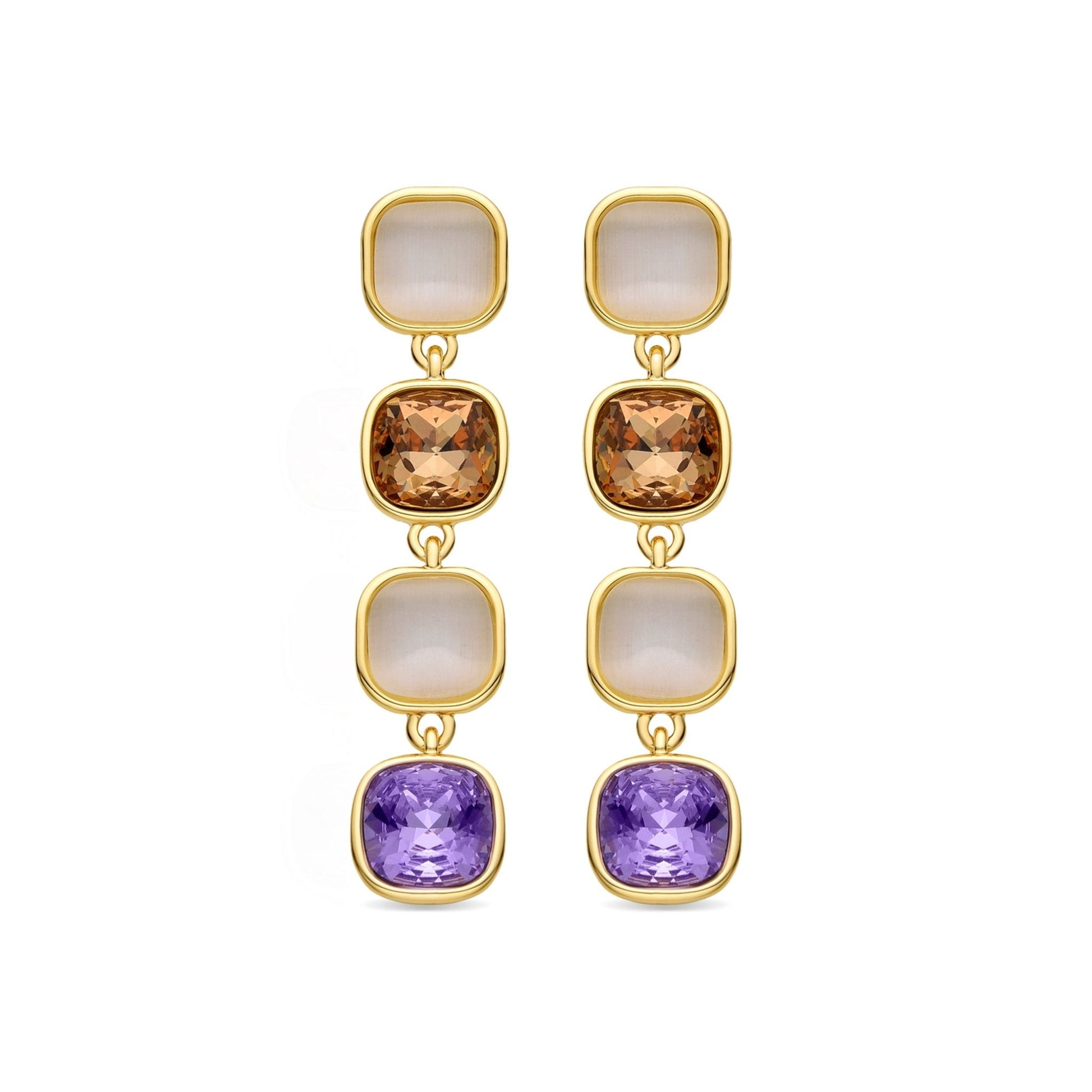 Pendientes Drogolo de Circonita Multicolor acabados en oro amarillo de 18k. África se convierte en la línea perfecta para mujeres con personalidad, que no temen arriesgar y lucir piezas con carácter propio.