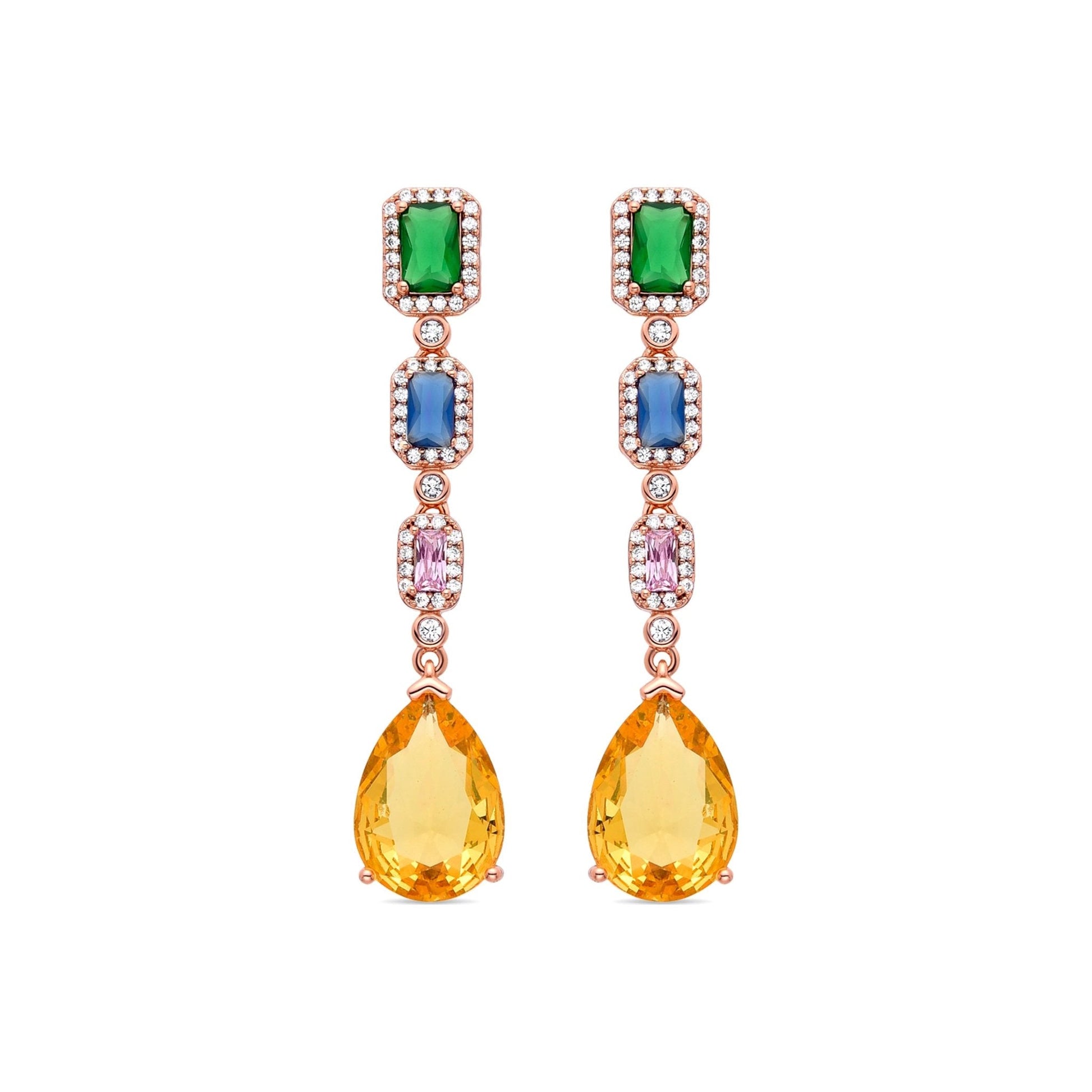 Pendientes Doomi con Circonita Multicolor acabados en oro amarillo de 18K. África se convierte en la línea perfecta para mujeres con personalidad, que no temen arriesgar y lucir piezas con carácter propio.