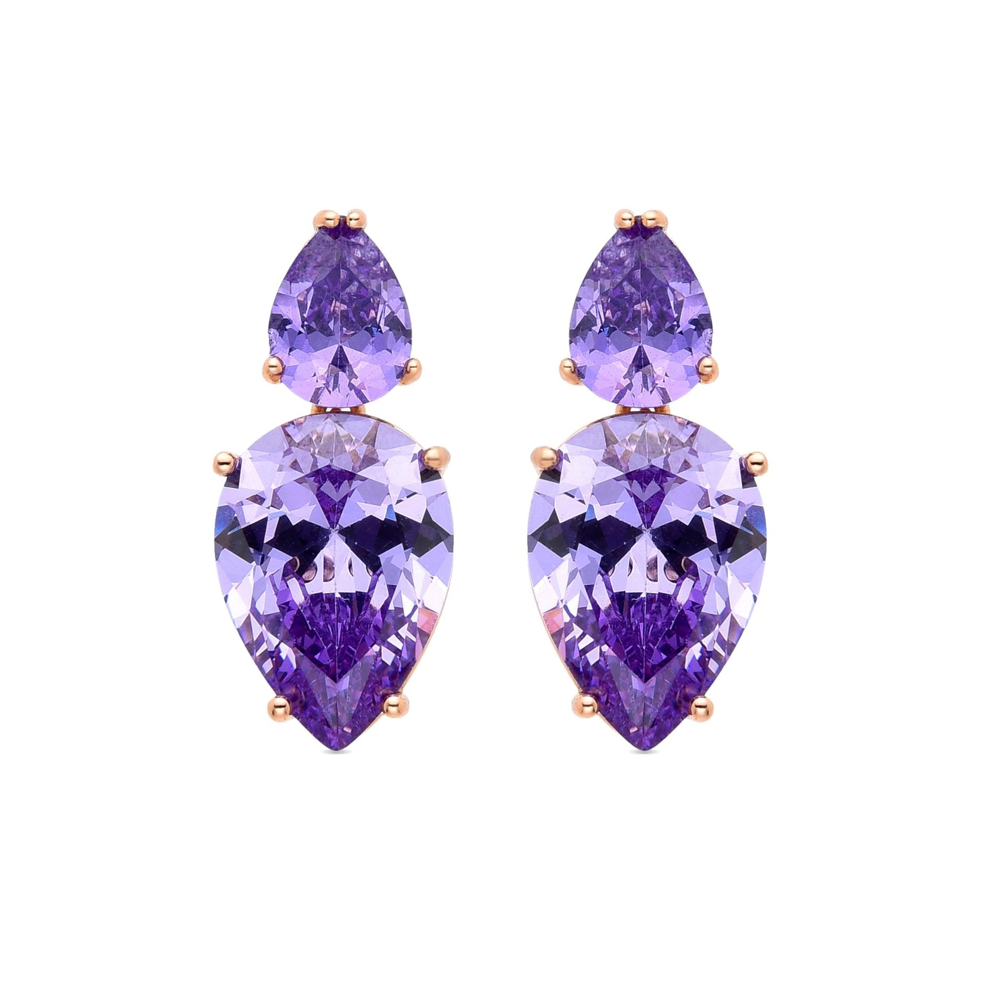 Pendientes Lixwi con Circonita Amatista acabados en oro amarillo de 18K. África se convierte en la línea perfecta para mujeres con personalidad, que no temen arriesgar y lucir piezas con carácter propio.