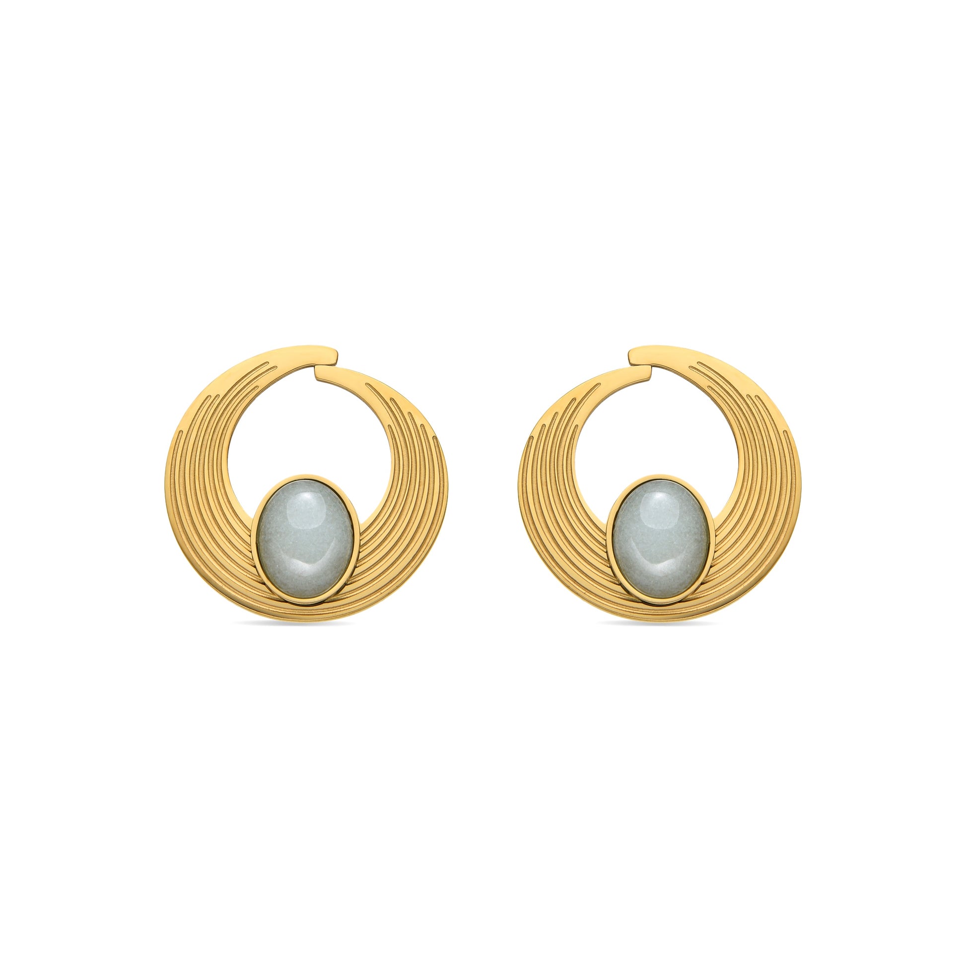 Pendientes de acero Halays con Amazonita acabado oro 18k. El estilo Boho es una estética de espíritu libre que mezcla diferentes culturas y expresiones artísticas en un estilo ecléctico con énfasis en los elementos orgánicos y la naturaleza.