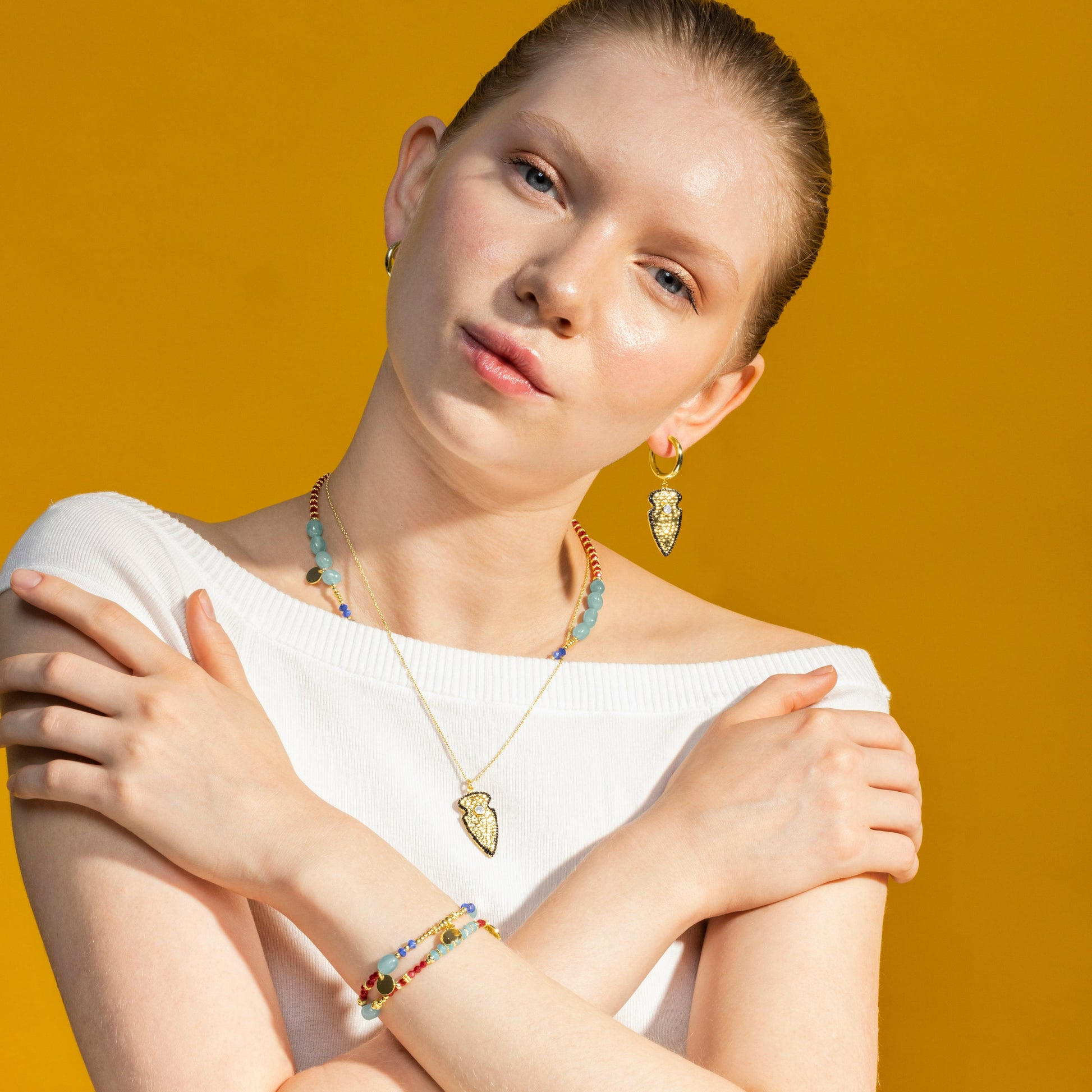 Pendientes de metal Otla con Circonita Brillante acabado oro 18k. El estilo Boho es una estética de espíritu libre que mezcla diferentes culturas y expresiones artísticas en un estilo ecléctico con énfasis en los elementos orgánicos y la naturaleza.