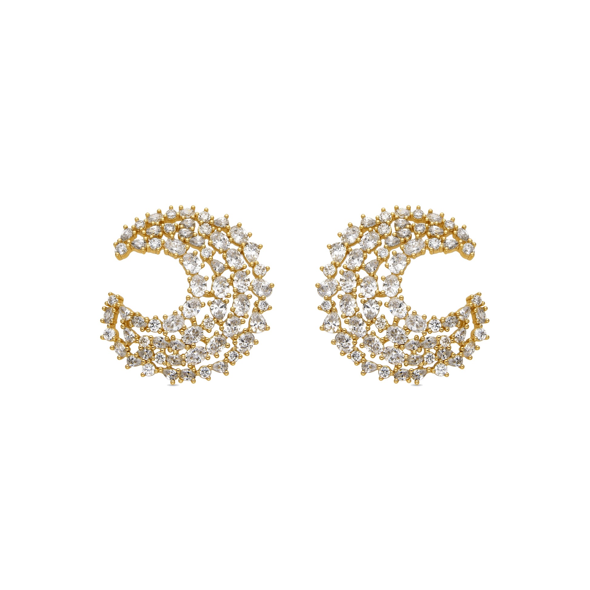 Pendientes Riaer con Circonita Brillante acabado oro 18k. LuxbyLux Africa se convierte en la línea perfecta para mujeres con personalidad, que no temen arriesgar y lucir piezas con carácter propio.
