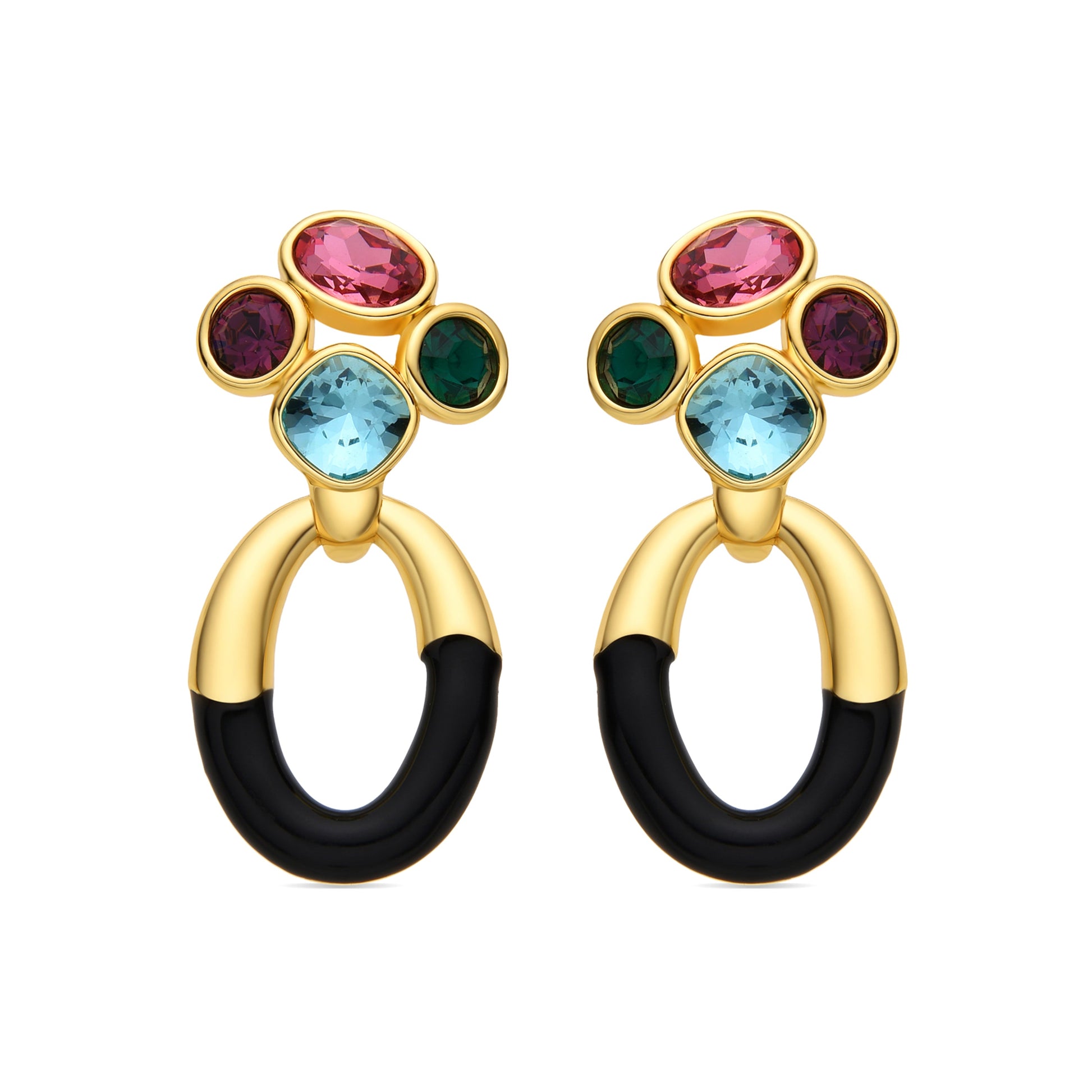 Pendientes Adba con Circonita Multicolor acabado oro 18k. África se convierte en la línea perfecta para mujeres con personalidad, que no temen arriesgar y lucir piezas con carácter propio.