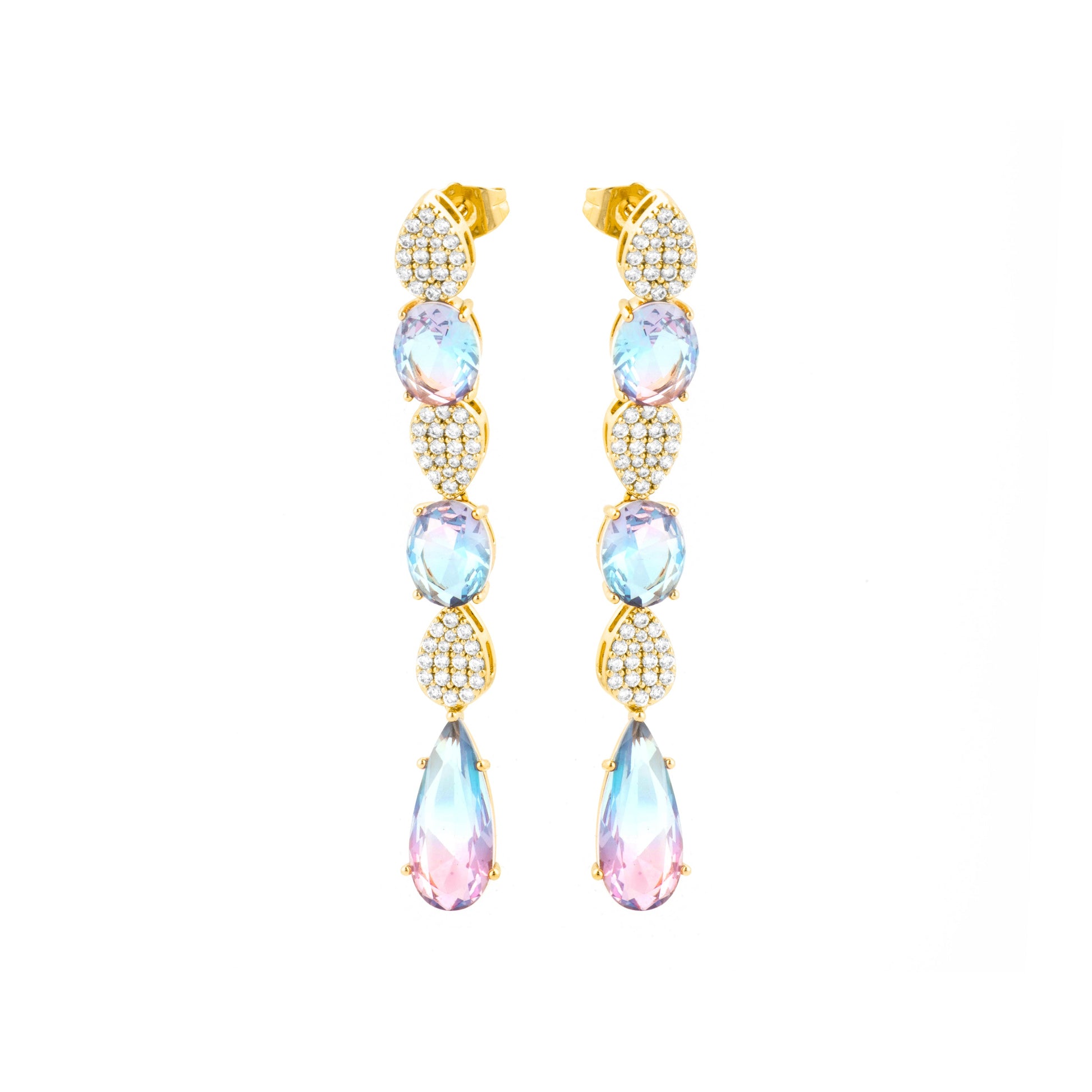 Pendientes con Circonita Multicolor acabado oro 18k - Dirio