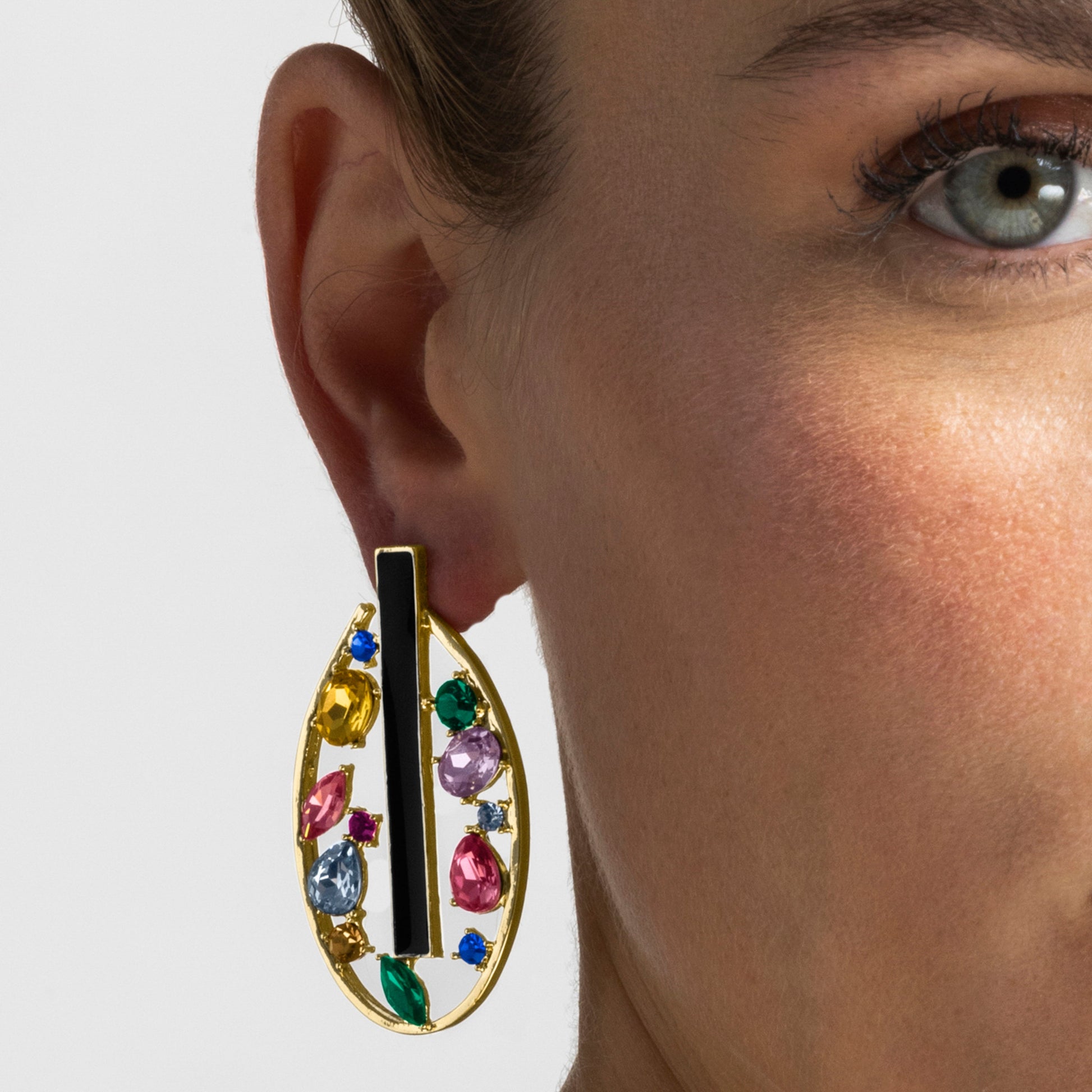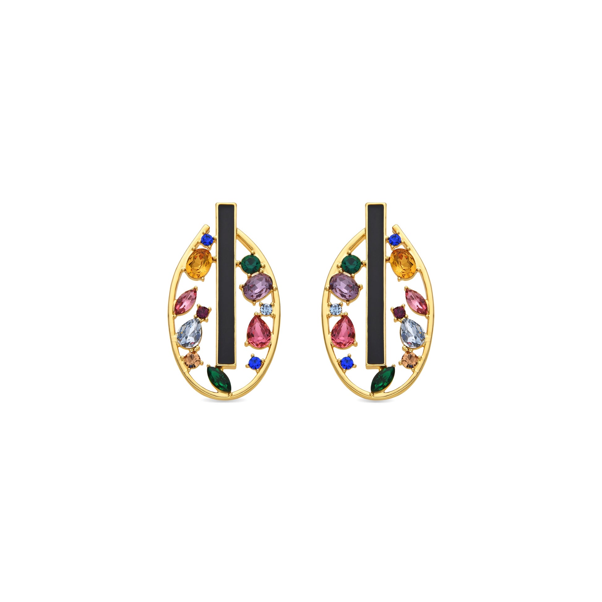 Pendientes Habyo con Circonita Multicolor acabado oro 18k. África se convierte en la línea perfecta para mujeres con personalidad, que no temen arriesgar y lucir piezas con carácter propio.