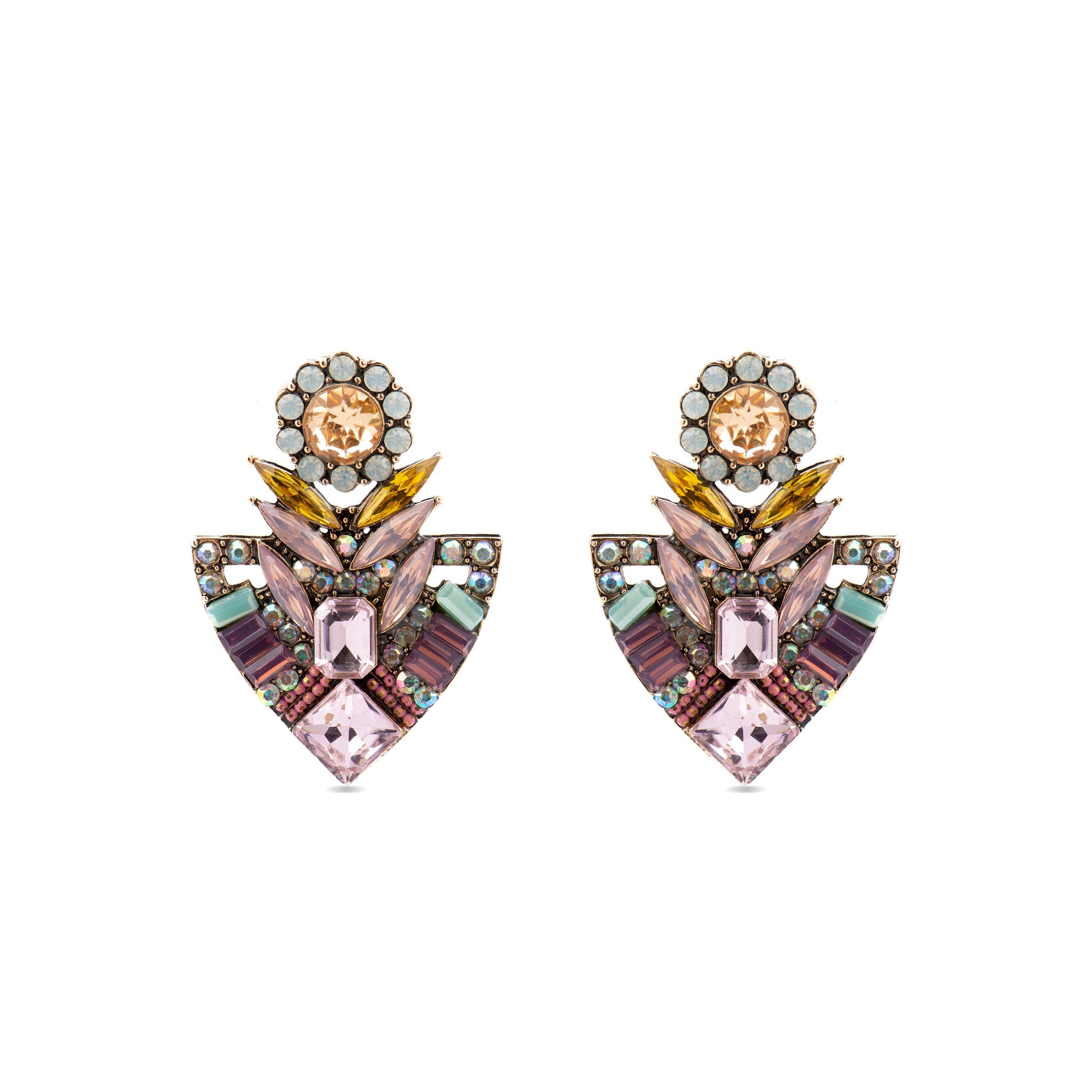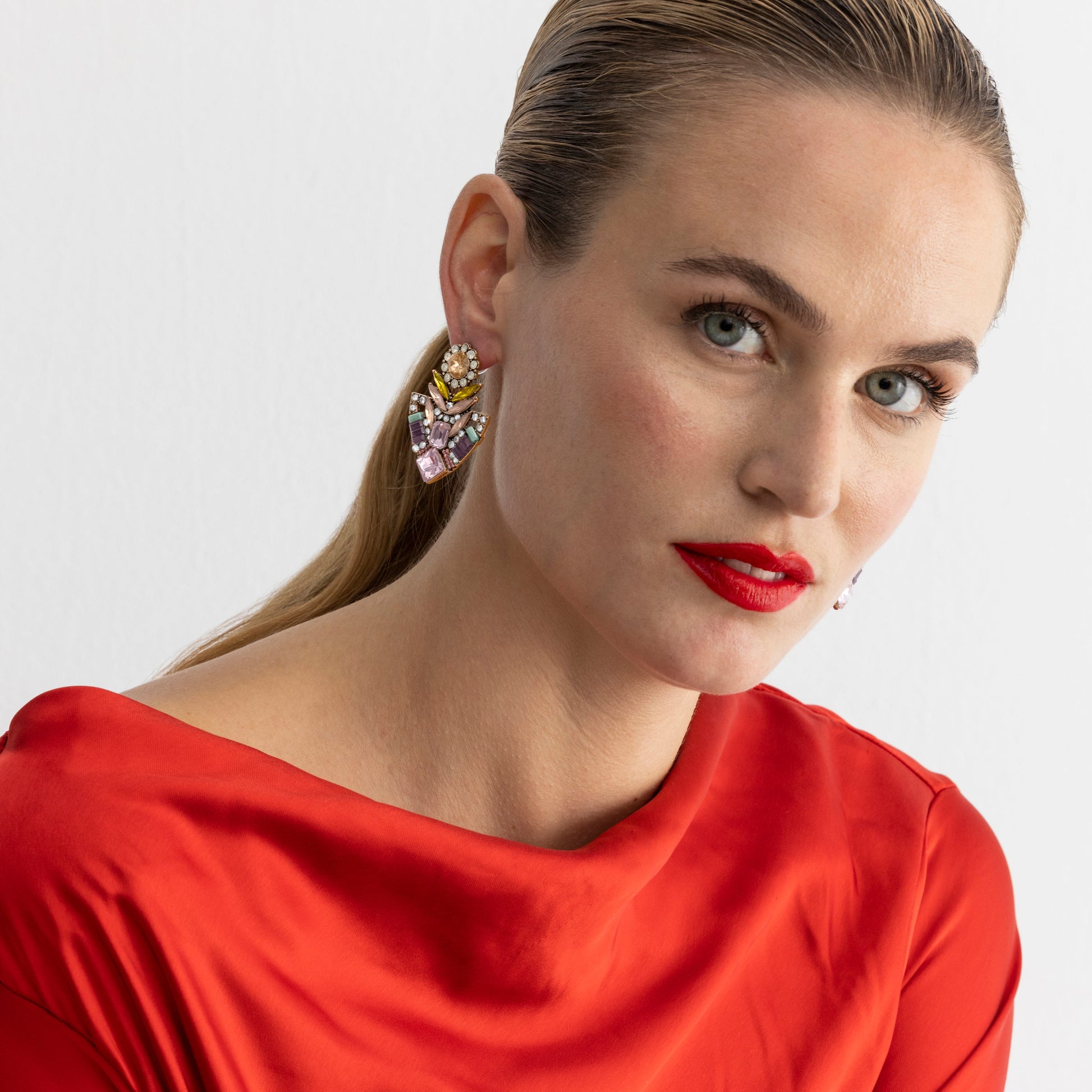 Pendientes Aphuat con Cristal Multicolor acabado oro 18k. LuxbyLux Africa se convierte en la línea perfecta para mujeres con personalidad, que no temen arriesgar y lucir piezas con carácter propio.