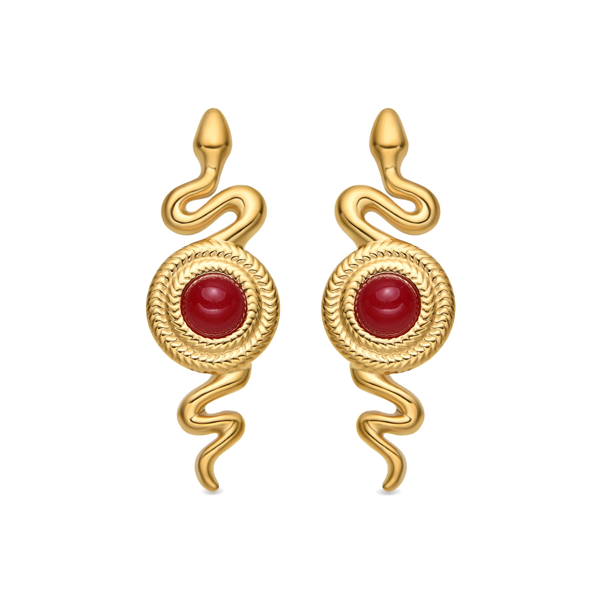 Pendientes de acero Edrak con Cristal Rojo acabado oro 18k. El estilo Boho es una estética de espíritu libre que mezcla diferentes culturas y expresiones artísticas en un estilo ecléctico con énfasis en los elementos orgánicos y la naturaleza.