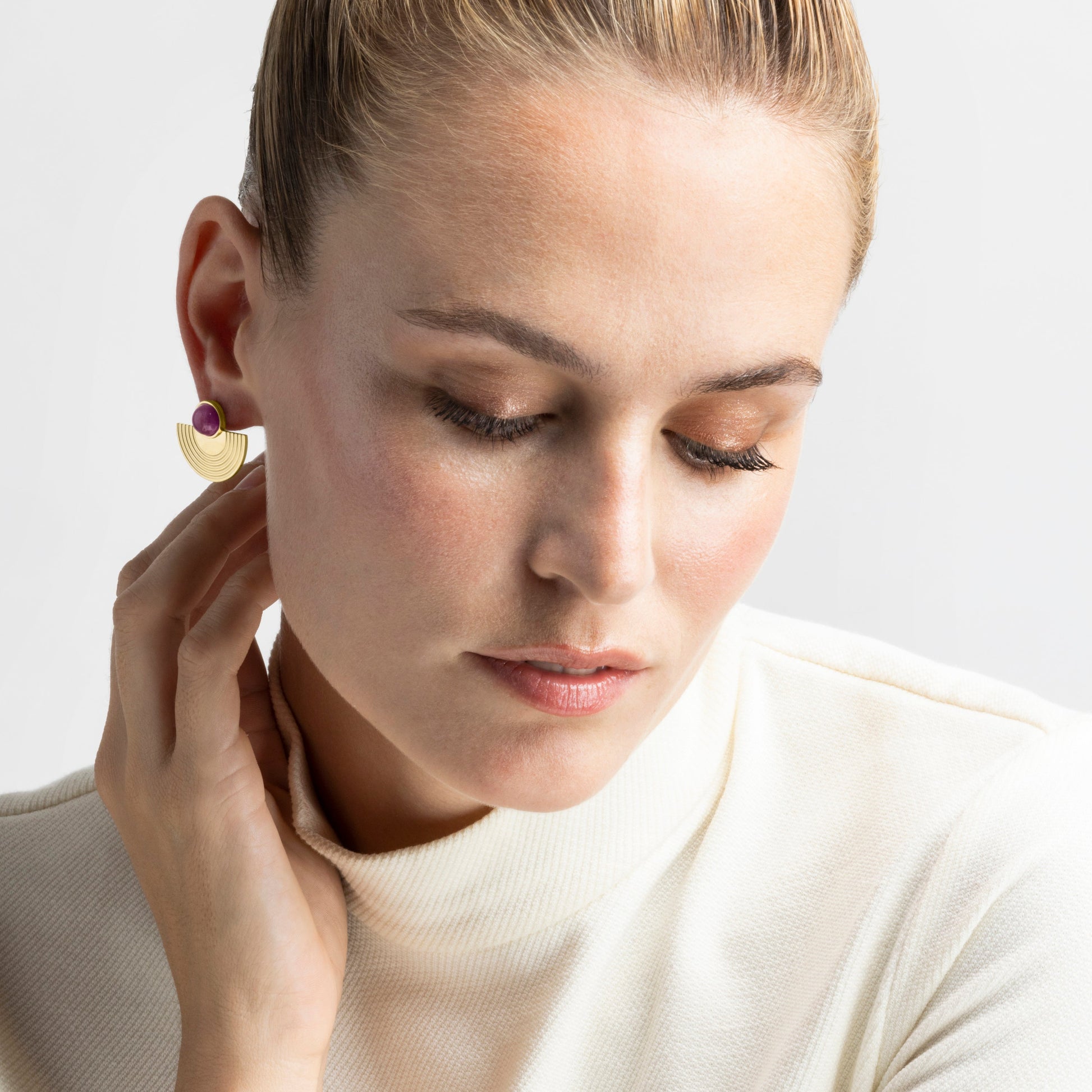 Pendientes con Cuarzo Hidrotermal Amatista acabado oro 18k - Koru