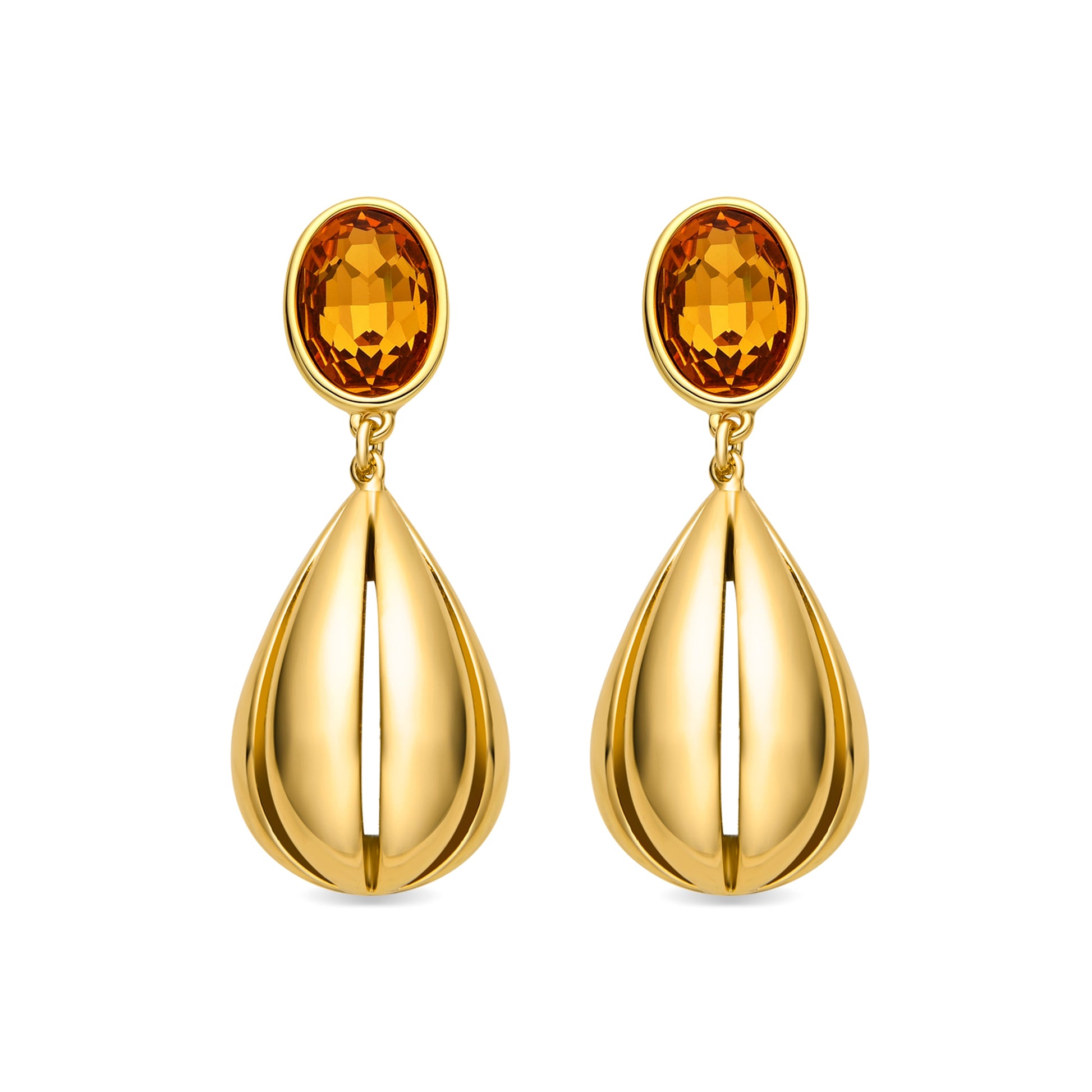 Pendientes Goneth con Cuarzo Hidrotermal Naranja acabado oro 18k. África se convierte en la línea perfecta para mujeres con personalidad, que no temen arriesgar y lucir piezas con carácter propio.
