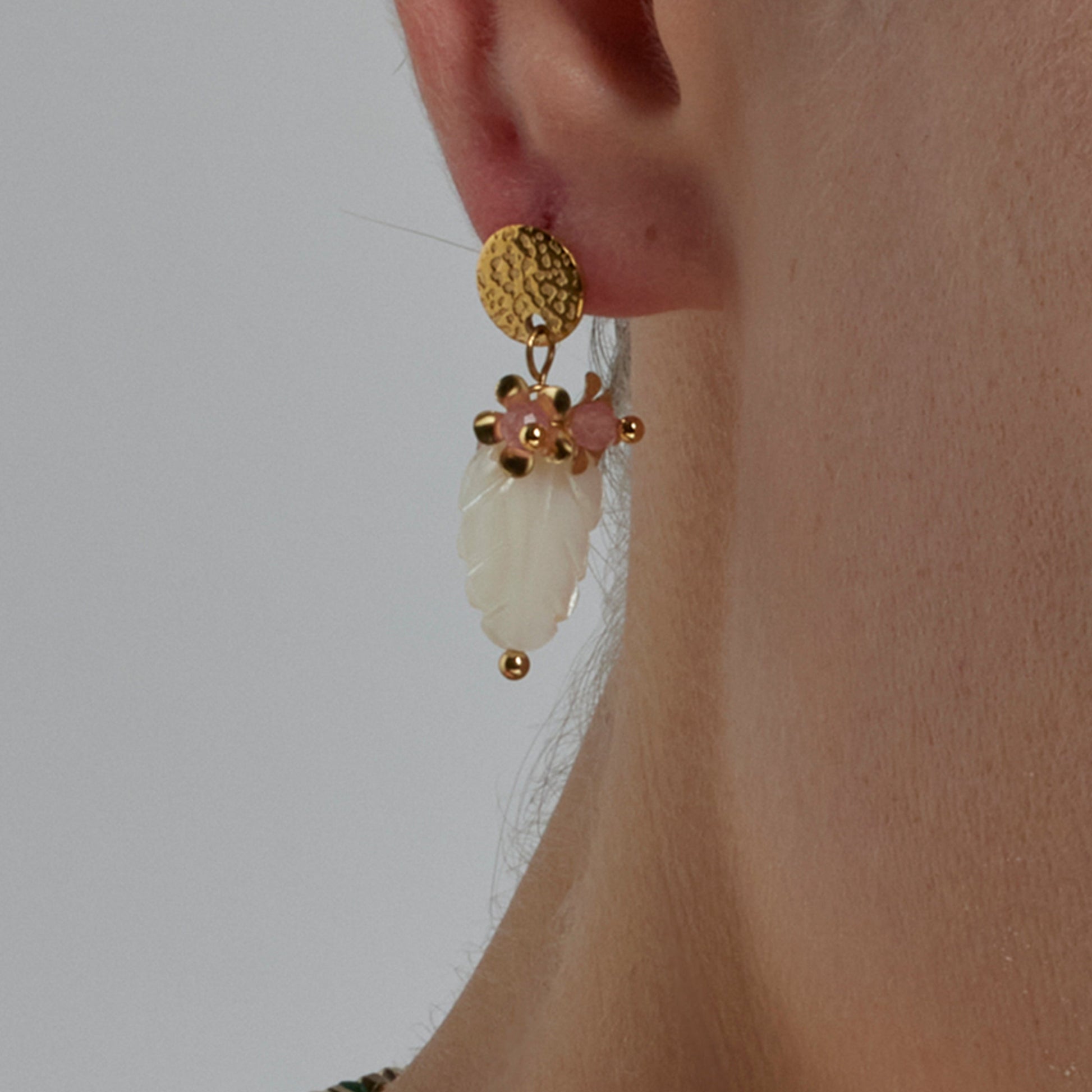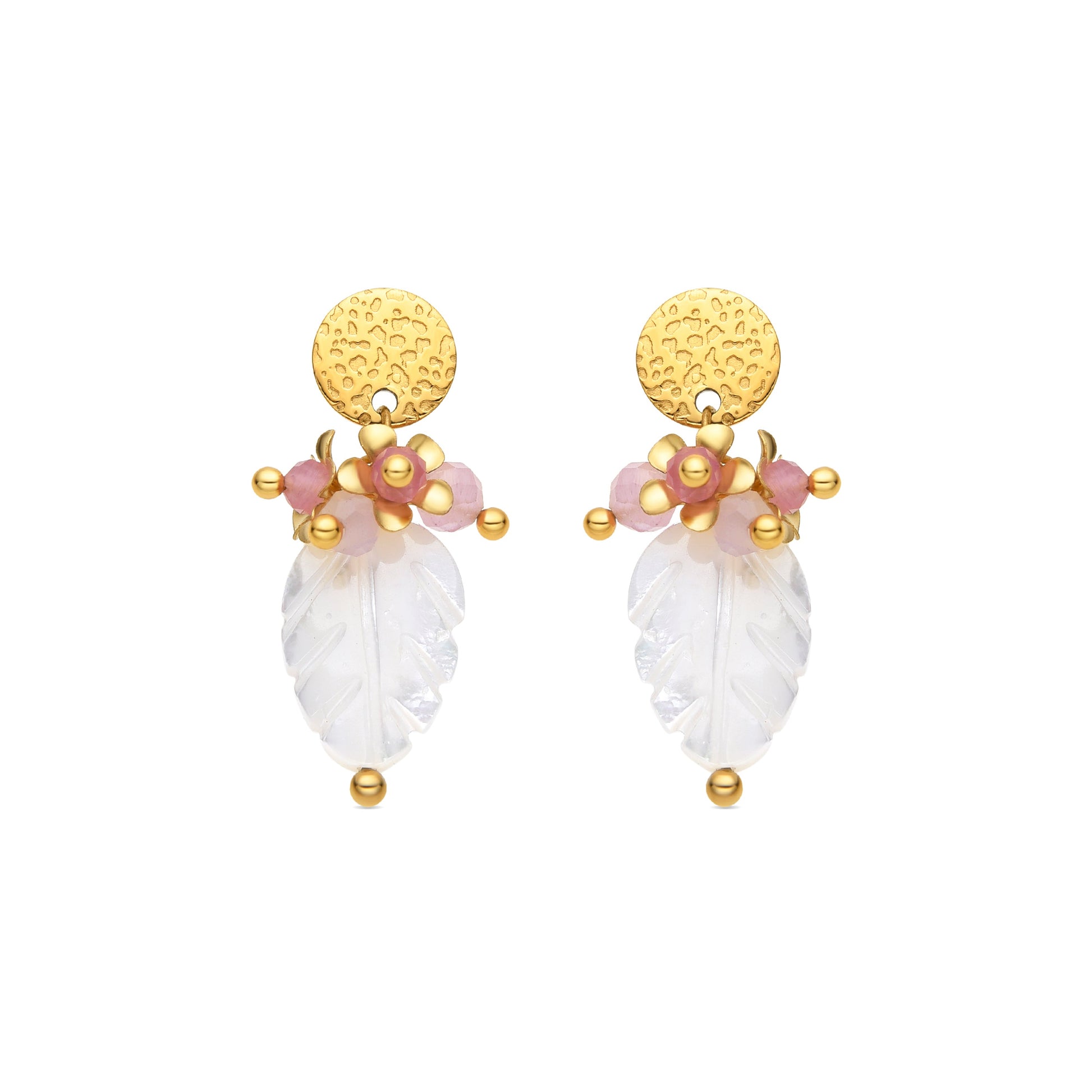 Pendientes Gaudark con Madreperla Blanca acabado oro 18k. El estilo Boho es una estética de espíritu libre que mezcla diferentes culturas y expresiones artísticas en un estilo ecléctico con énfasis en los elementos orgánicos y la naturaleza.