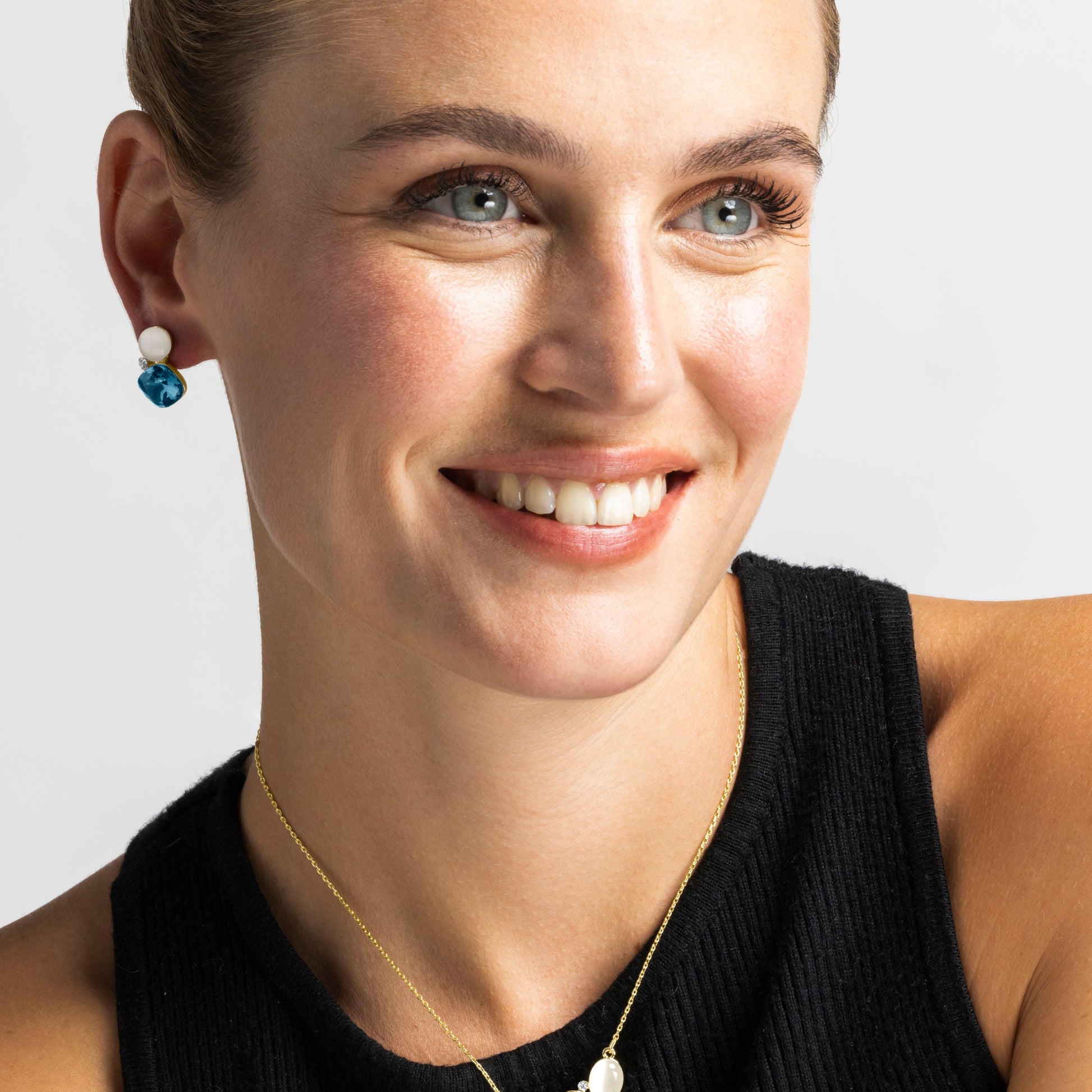 Pendientes Sitla con Ojo de Gato acabado oro 18k. África se convierte en la línea perfecta para mujeres con personalidad, que no temen arriesgar y lucir piezas con carácter propio.